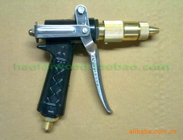 Pistola de água de alta pressão com cabeça de cobre, padrão de água ajustável (spray, linha reta), com fivela para economia de trabalho