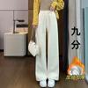 Calças de perna larga de veludo de algodão europeu Calças forradas de lã feminina Inverno 2023 Novo outono e inverno Calças retas estreitas pequenas espessas para mulheres