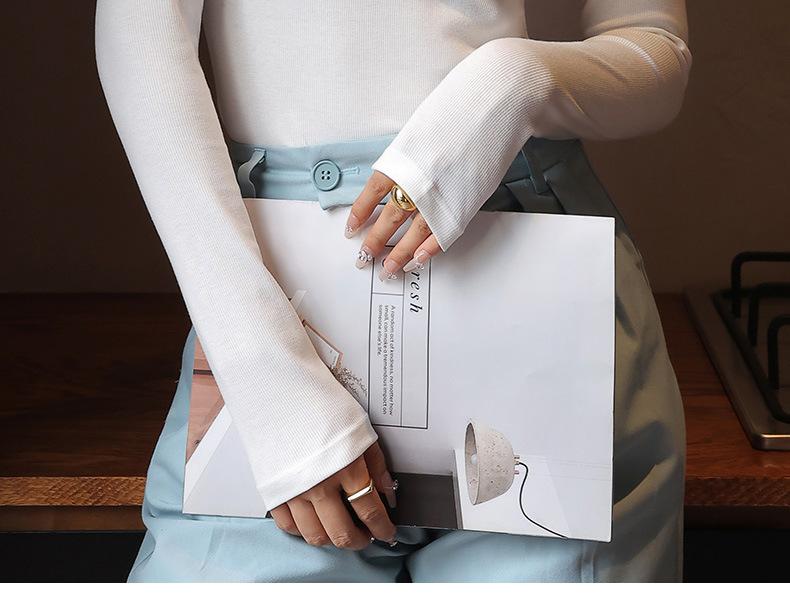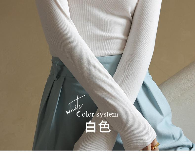 Camiseta Básica de Gola Alta para Mulheres, Outono e Inverno Simples Branca Gola Média Camiseta Douyin Nova Manga Longa Slim Top