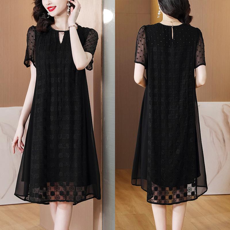 Compre Novo Estilo Chinês Vestido Bordado Vintage Feminino 2024 Verão Nova Moda Simples Decote Redondo Malha Renda Pequeno Vestido Preto no atacado no Joom.pro