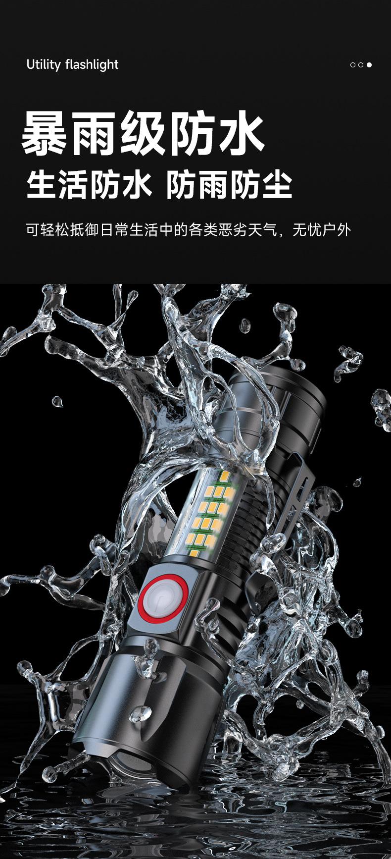 Nova lanterna recarregável portátil de emergência, mini lanterna multifuncional de patrulha com luz forte e luz lateral, atacado