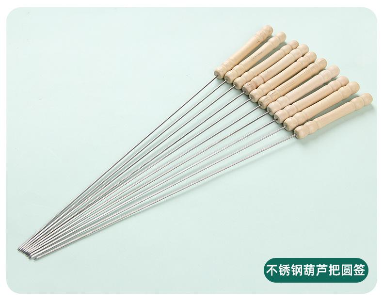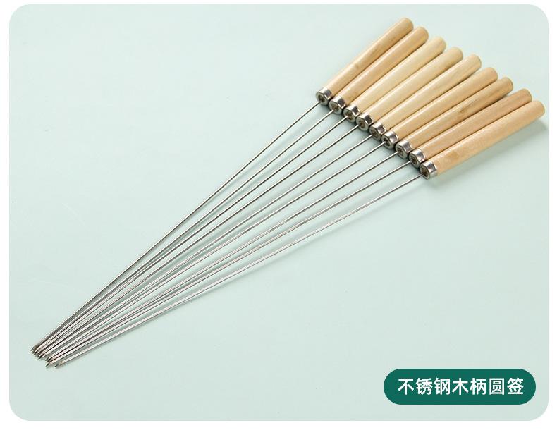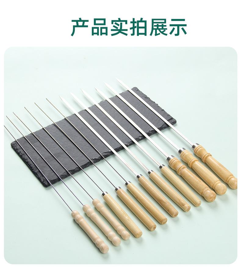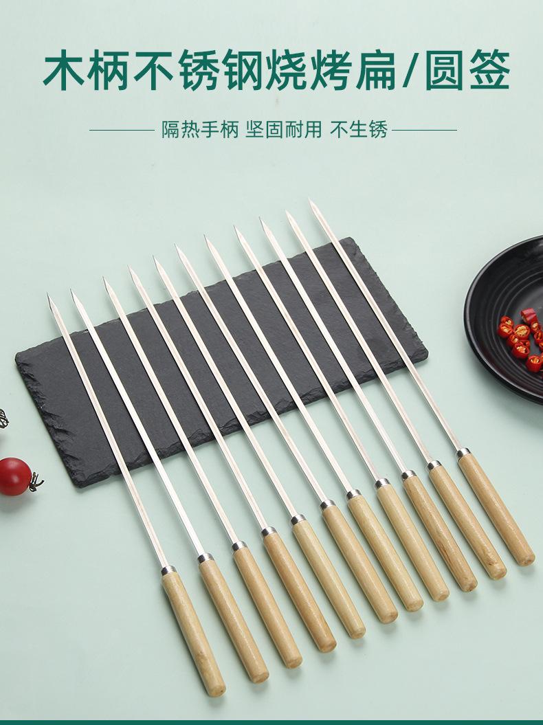Las brochetas para barbacoa con mango de madera están disponibles en paquetes de 20 o 50 piezas.