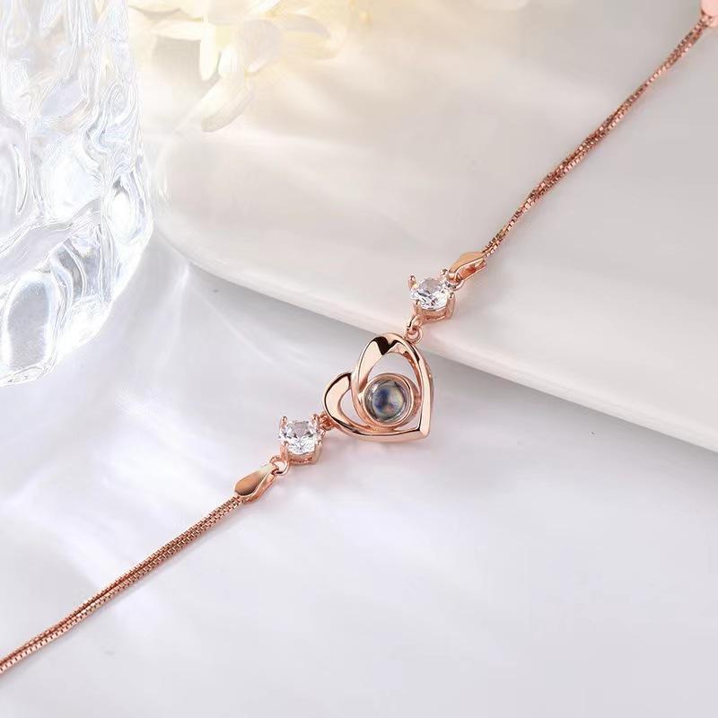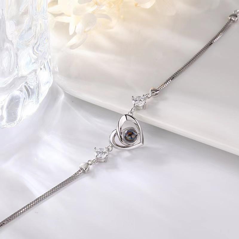 Nova pulseira transfronteiriça europeia e americana prata S925 100 idiomas eu te amo pulseira de projeção em forma de coração feminina personalização de comércio exterior