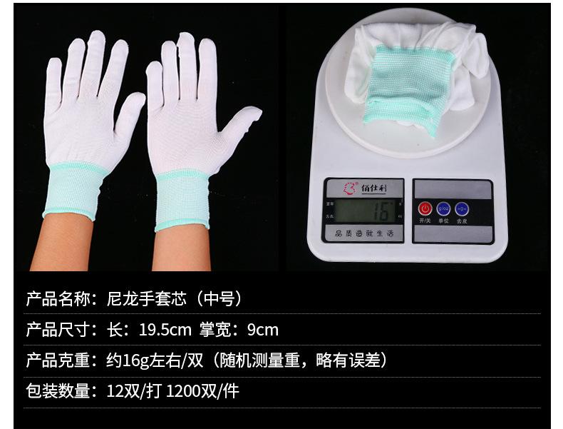 Luvas de náilon de calibre 13: As luvas são relativamente finas e pequenas, adequadas para mulheres que precisam de um estilo leve ou homens com mãos pequenas para usar (12 pares/dúzia, 1200 pares/peça)