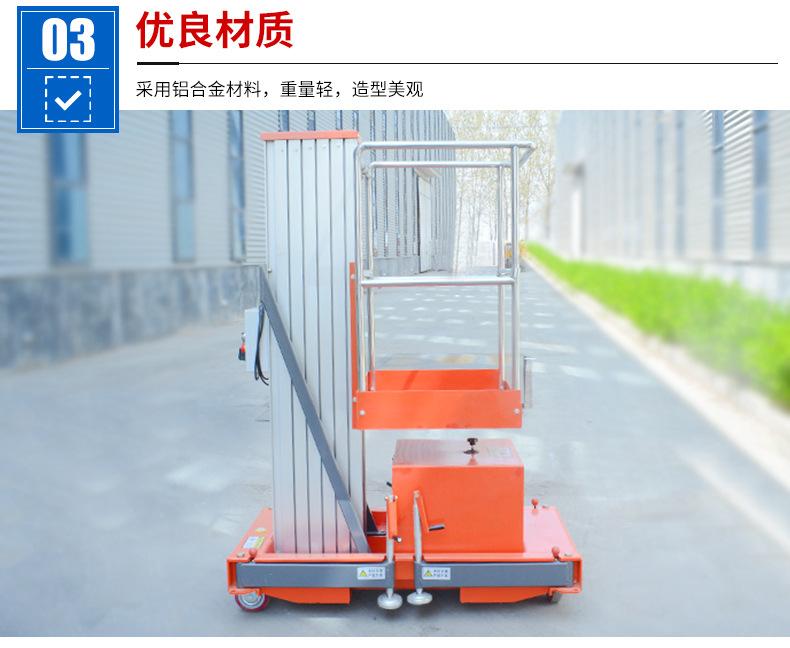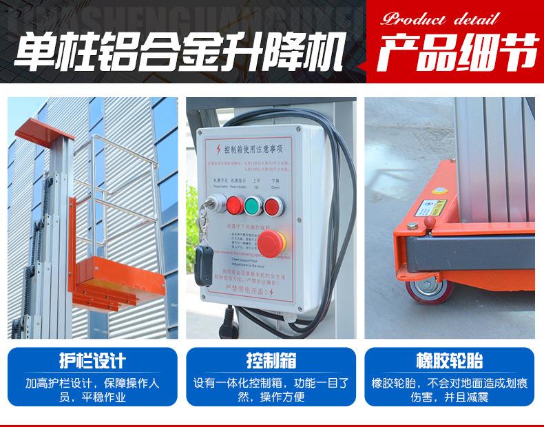 Elevador de liga de alumínio de coluna única Plataforma de trabalho aéreo elétrica pequena Elevador hidráulico elétrico móvel Elevador de liga de alumínio de coluna única Plataforma de trabalho aéreo elétrica pequena Elevador hidráulico elétrico móvel Elevador de liga de alumínio de coluna única