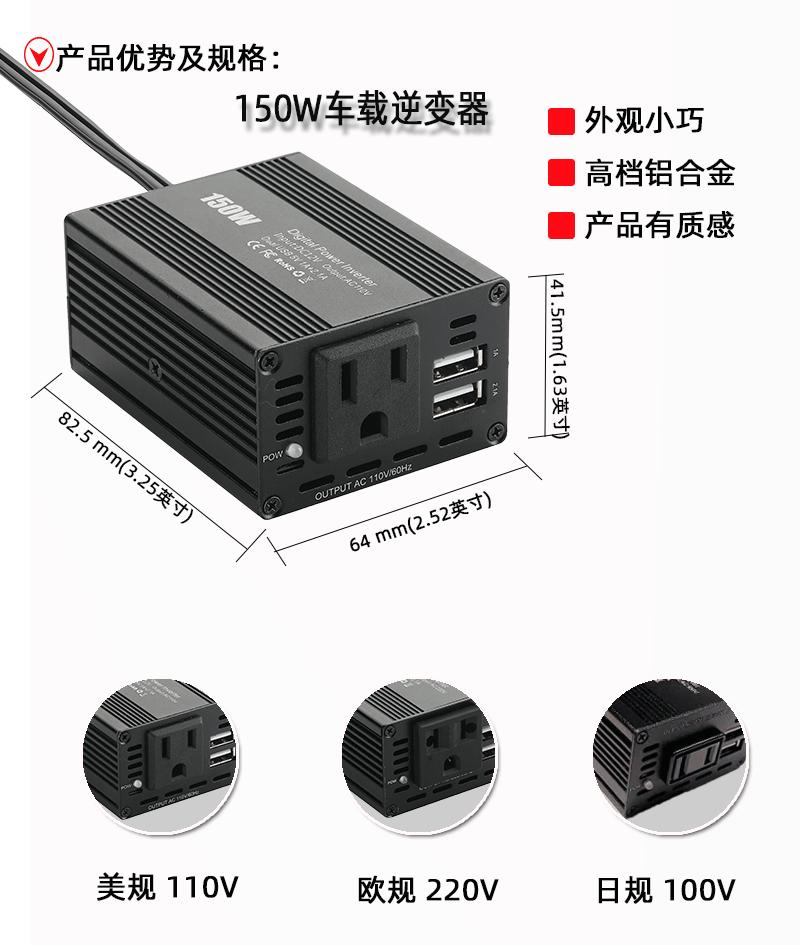 Dimensões do inversor: comprimento, largura e altura 82,5*64*41,5 mm