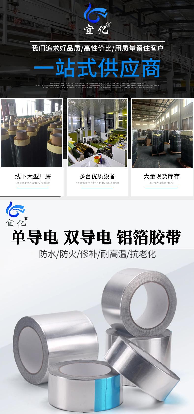 4. La cinta de aluminio se divide en adhesiva por un lado y adhesiva por ambos lados. La cinta de aluminio adhesiva por un lado se divide además en cinta de aluminio de un solo conductor y cinta de aluminio de doble conductor. Cinta de aluminio de un solo conductor significa que el lado adhesivo no es conductor, y solo el otro lado es de aluminio puro conductor, por lo que se le llama de un solo conductor o conductora por un lado; cinta de aluminio de doble conductor significa que el lado adhesivo es conductor, y el cobre en el otro lado también es conductor, por lo que se le llama de doble conductor o conductora por ambos lados. También hay cintas de aluminio adhesivas por ambos lados que se utilizan para ser procesadas con otros materiales en materiales compuestos más caros. El lado adhesivo del aluminio adhesivo por ambos lados también se divide en conductor y no conductor. Los clientes pueden elegir según sus propias necesidades de conductividad.