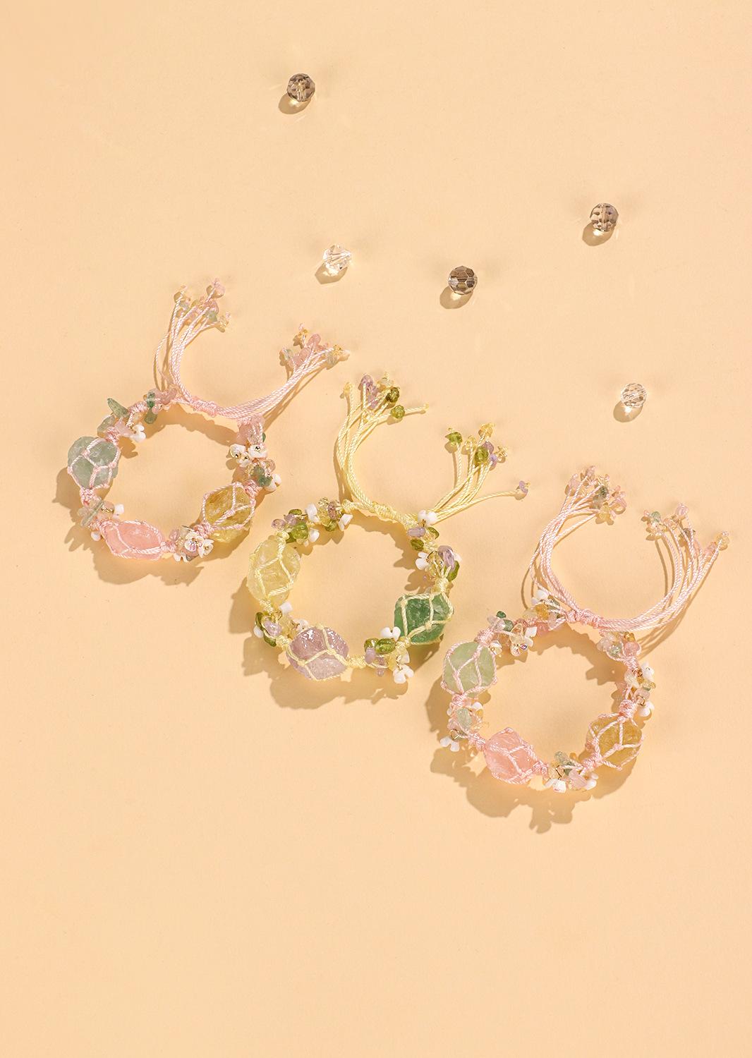 Compre Pulseira feminina de luxo com três flores rosas de cristal, corda feita à mão, ametista, citrino no atacado no Joom.pro