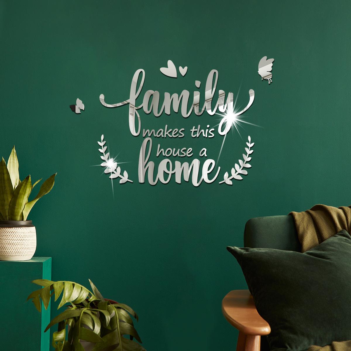 Compre Adesivos de parede de espelho inglês para casa de acrílico, adesivos autoadesivos para decoração de quarto, sala de estar, casa, atacado, adesivos de letras no atacado no Joom.pro