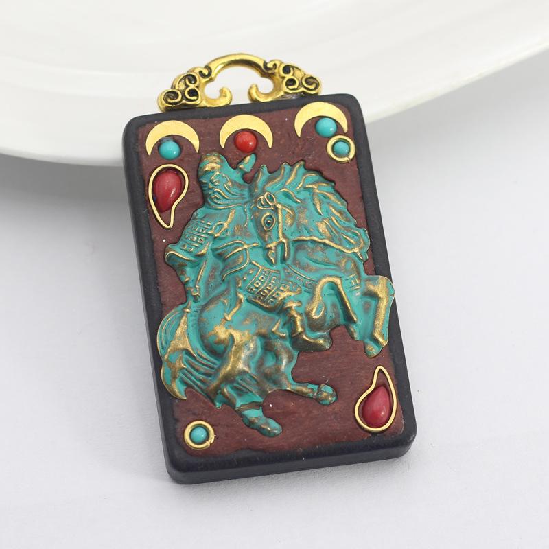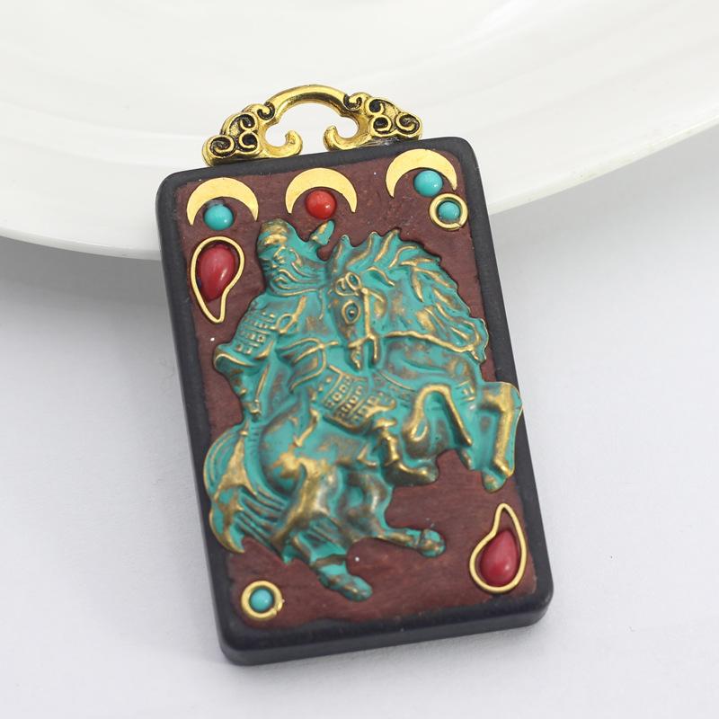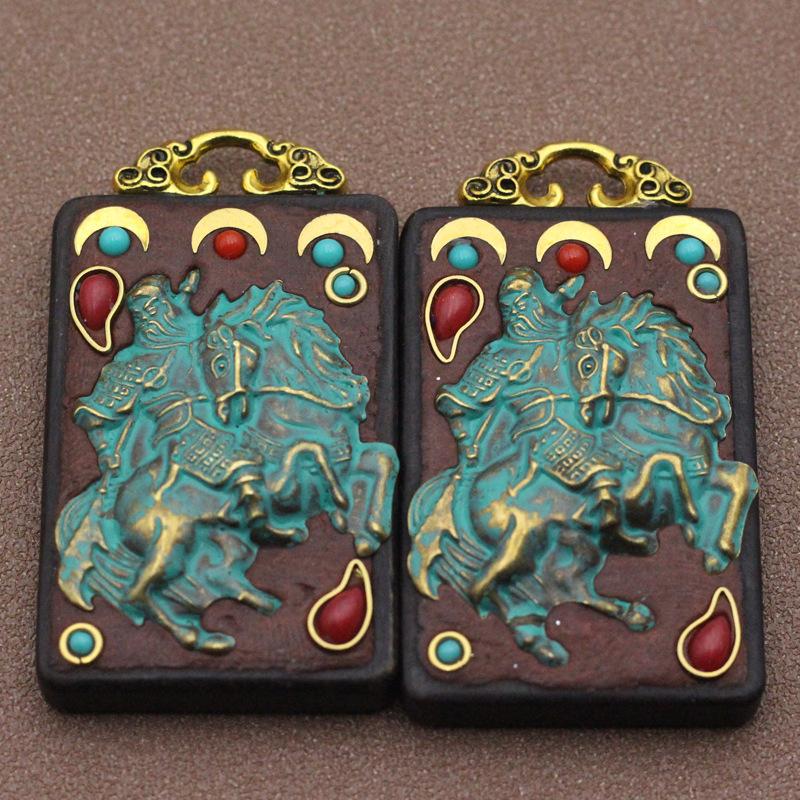 Nome: Pingente de sândalo roxo, placa de ébano, pingente Guan Gong, acessórios de pingente de colar Guan Gong incrustado em estilo étnico