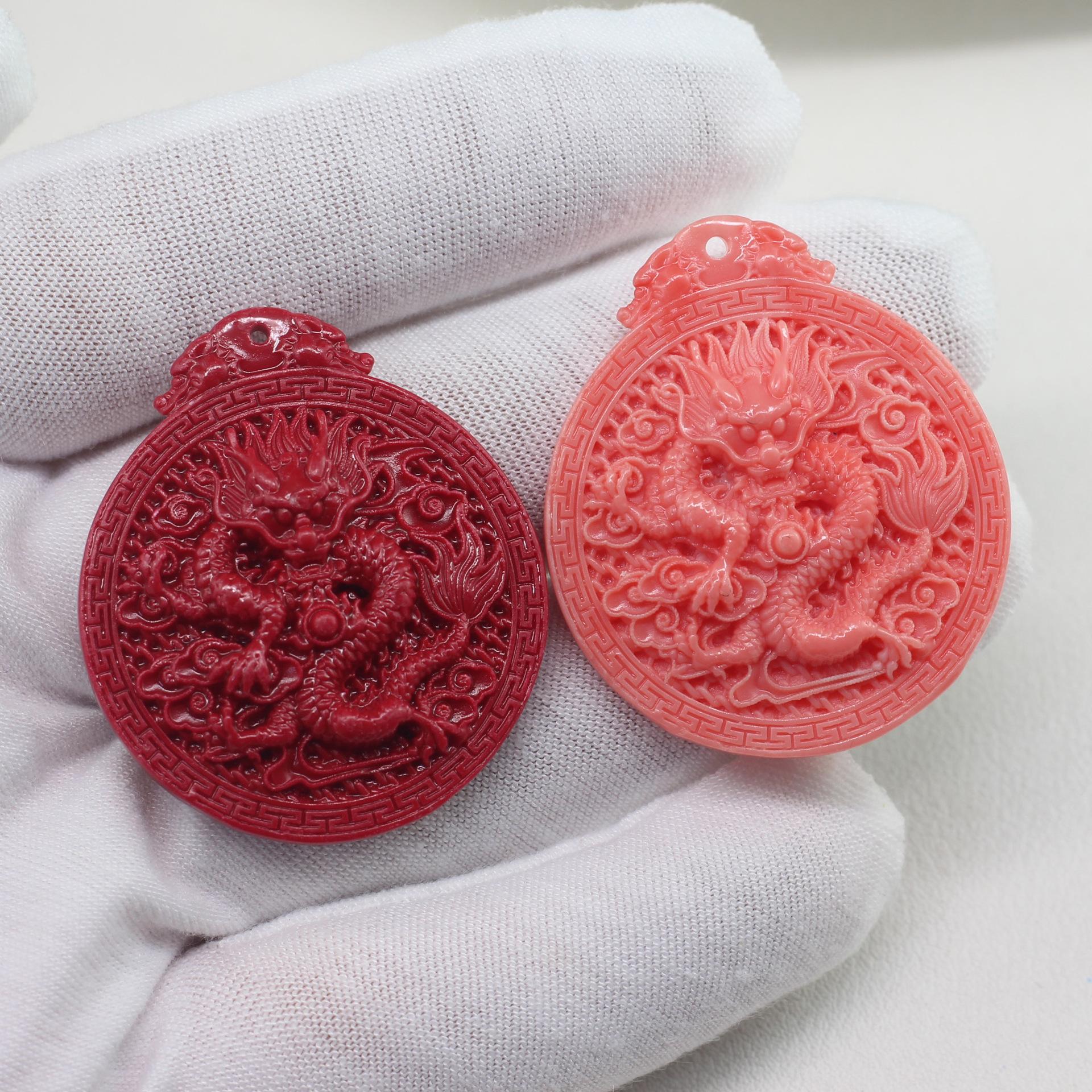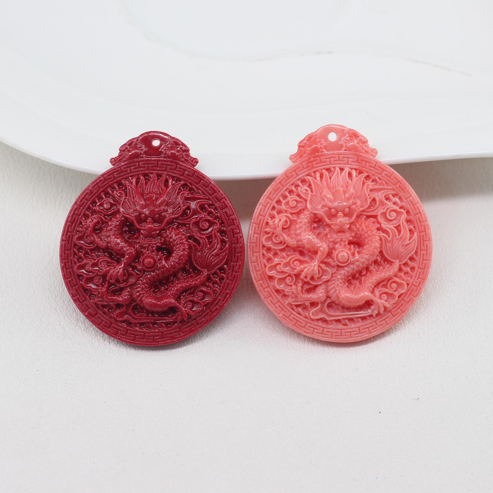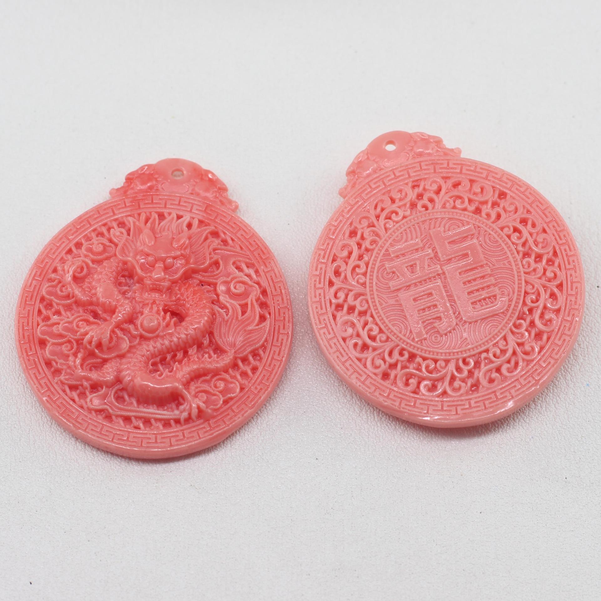 Nome: Novo pingente de dragão prensado em pó de coral, pingente de bola de dragão em nuvem auspiciosa primorosamente esculpido, pingente de colar de dragão do zodíaco para o ano de nascimento
