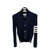 Camisa de Malha TB para Mulheres Oco Tricotado Quatro Barras Decote V Casual All-Match Top Simples Cardigan de Manga Longa