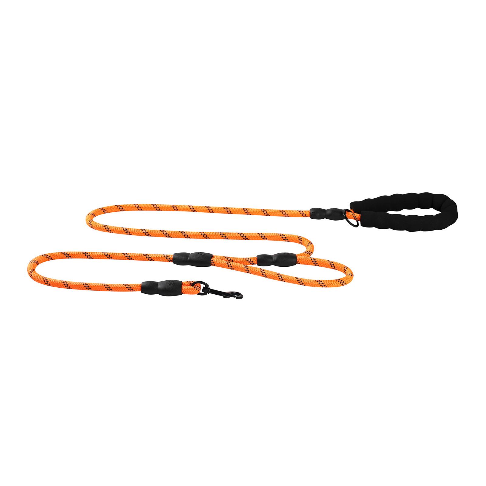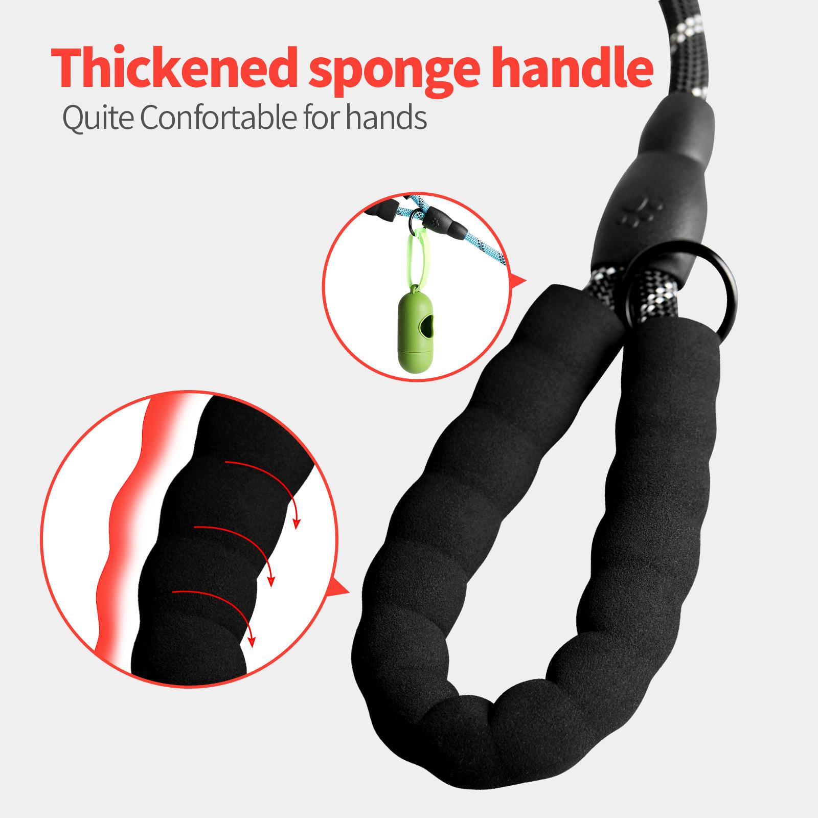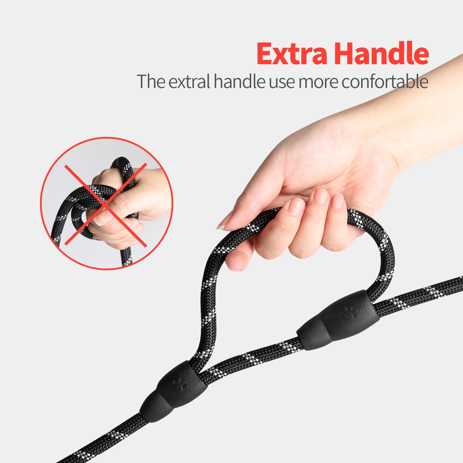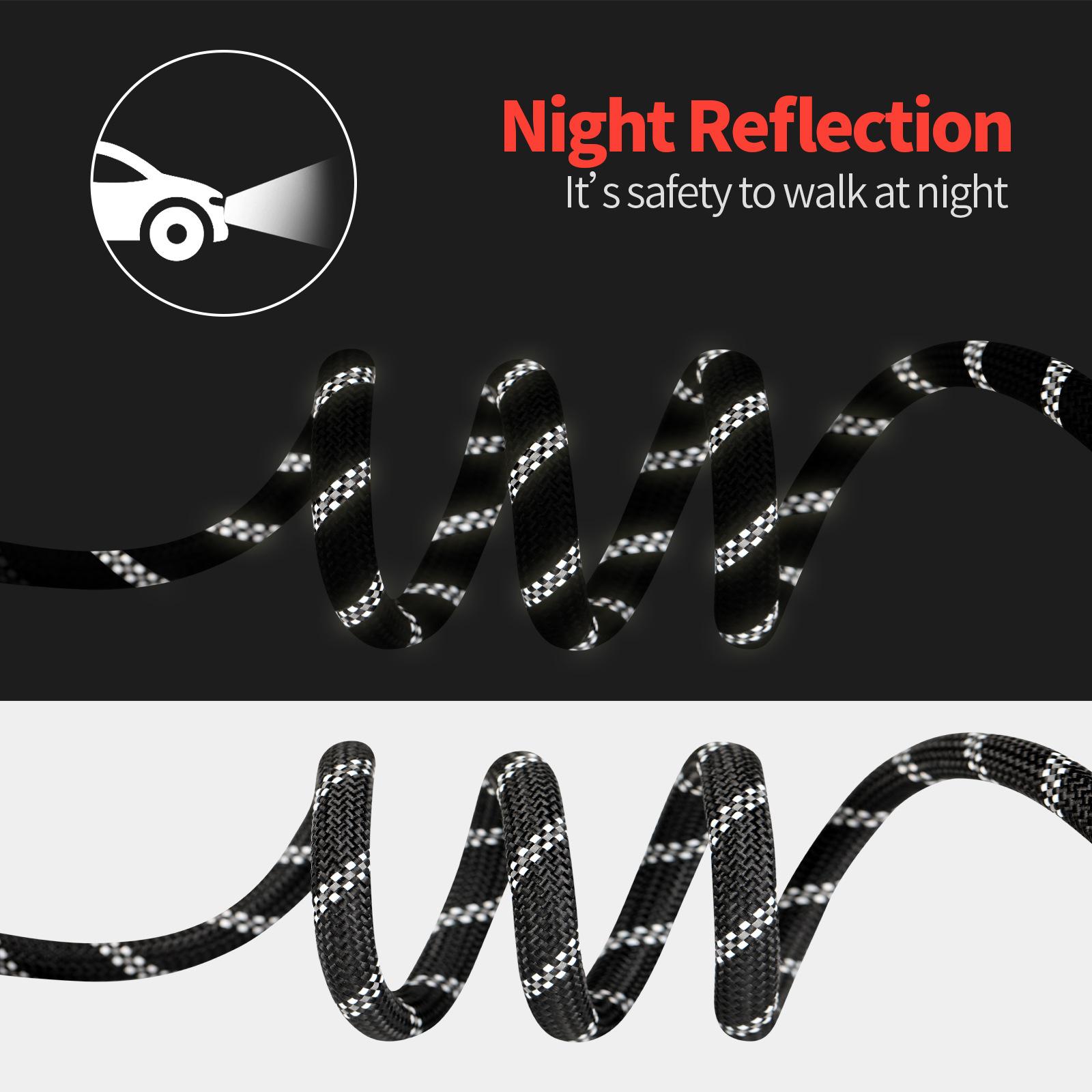 A corda de tração é projetada como uma corda redonda com tiras refletivas, o que aumenta a segurança das viagens noturnas. O design de alça dupla torna mais fácil controlar os movimentos do cão. É um bom ajudante ao sair!