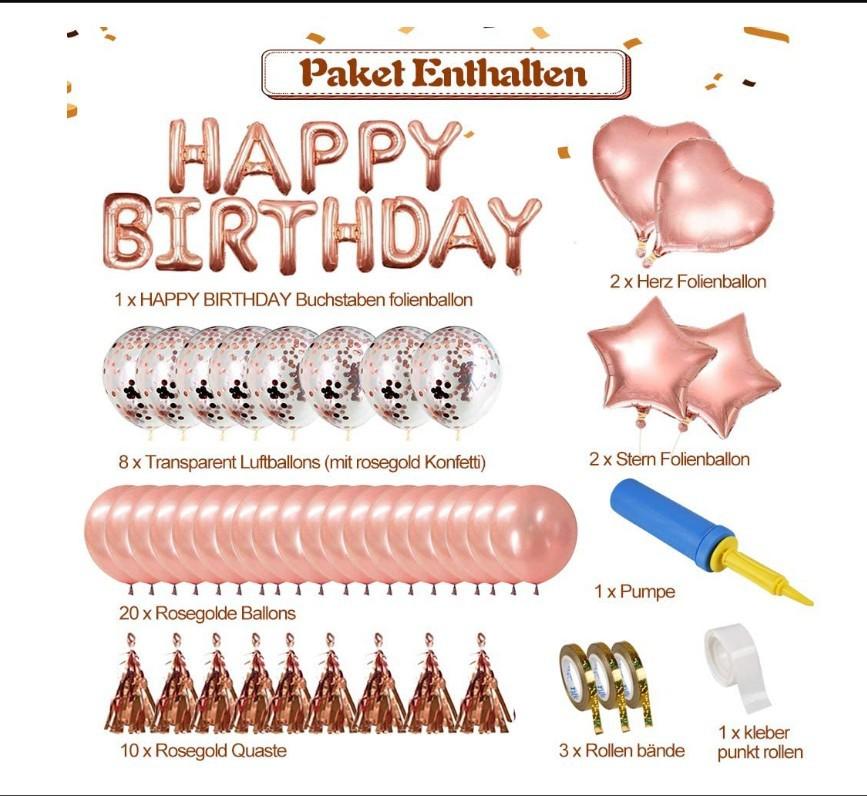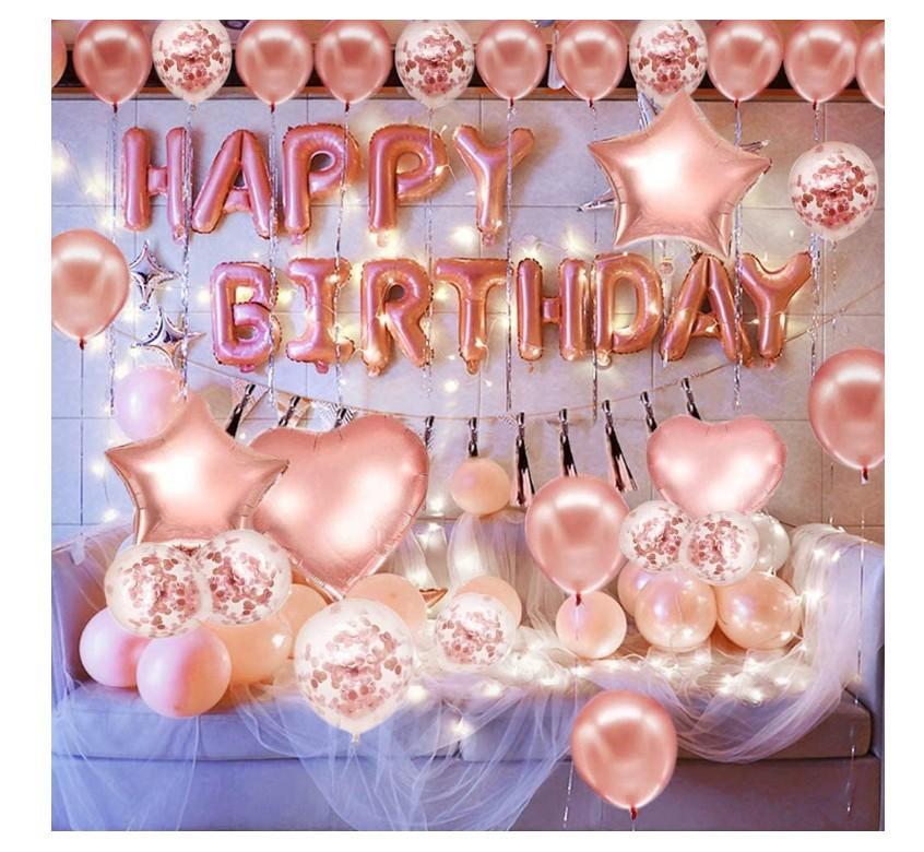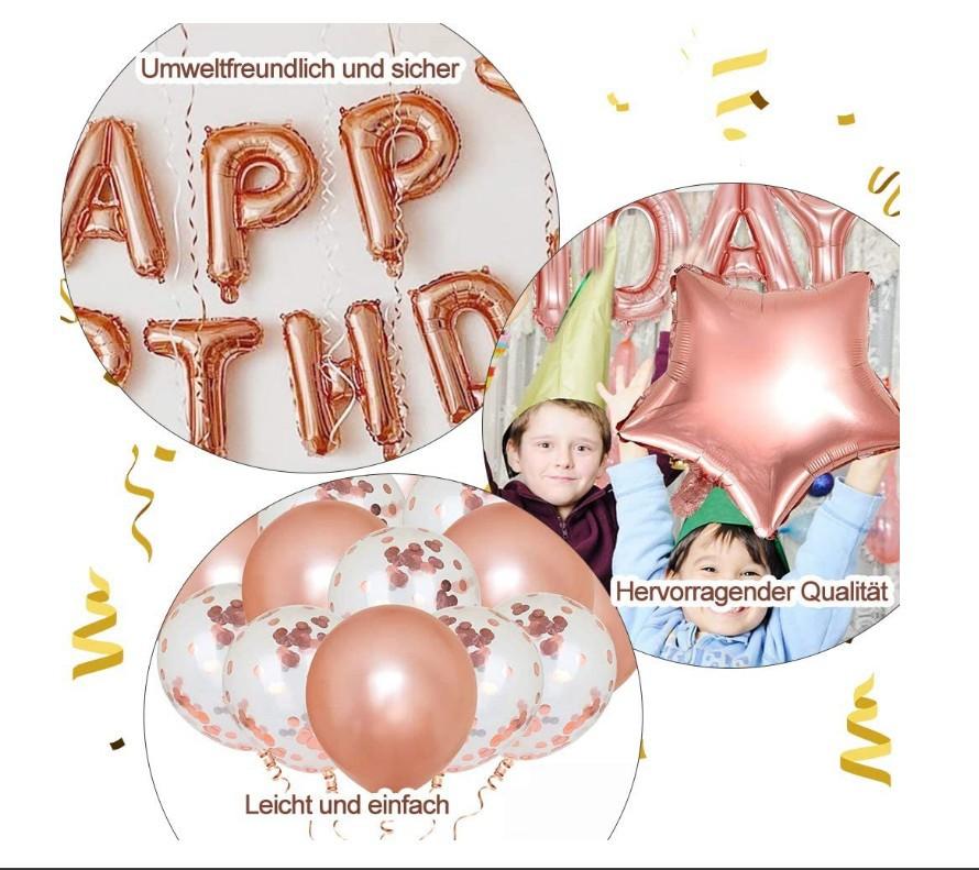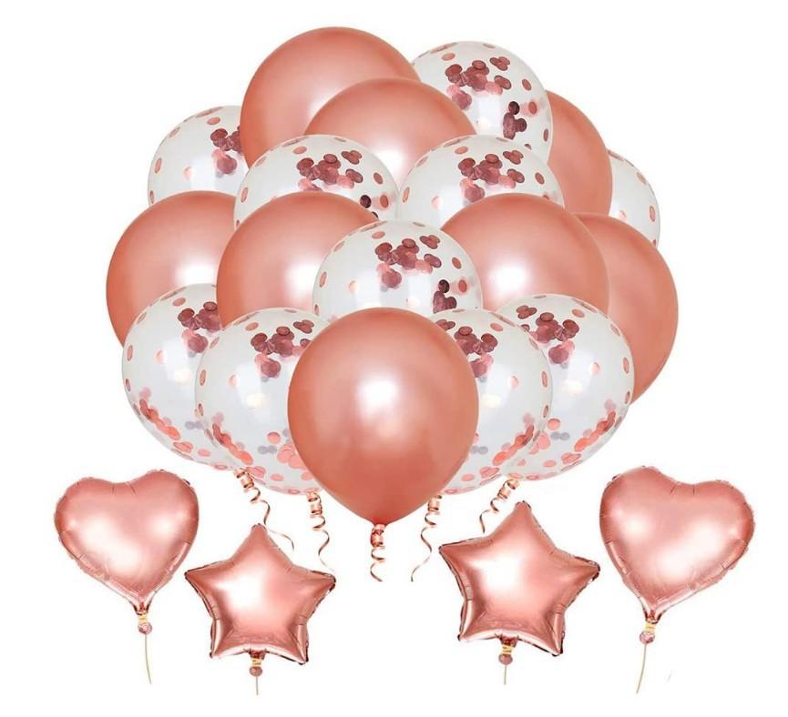 Decorações para festa em ouro rosa Balões de confete de feliz aniversário com faixa, balões gigantes de folha de champanhe, balões de folha de coração de estrela, bolas de papel para decoração de 18, 21, 30, 50 e 60 de janeiro
