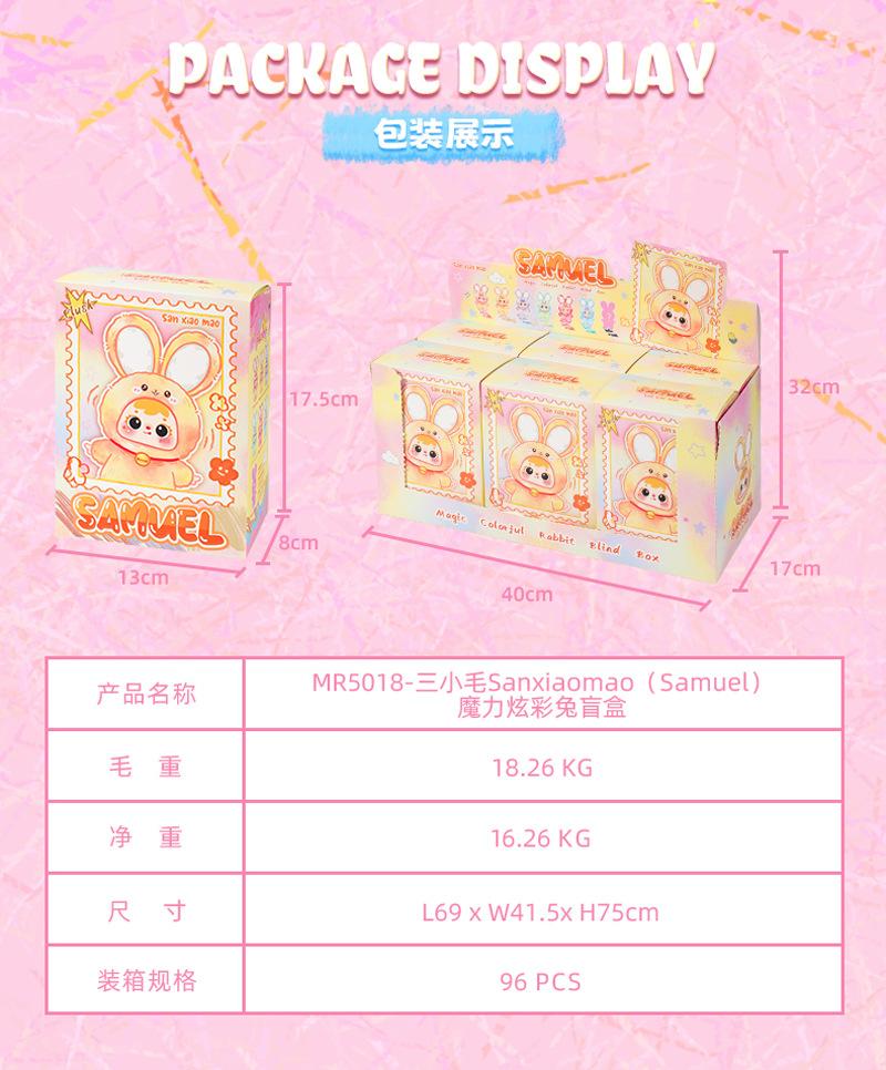 | 【Nome do Produto】 | MR5018 Três Pelinhos (Samuel) Coelho Mágico Colorido Pingente de Pelúcia Caixa Surpresa |