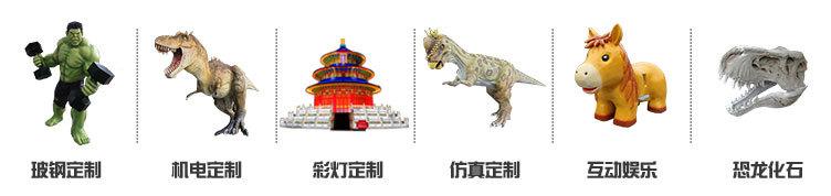 O produto combina tecnologia moderna e artesanato tradicional. Todos os elos são feitos à mão. O tamanho, aparência, cor e movimento do produto são personalizados de acordo com os requisitos do cliente. Ele pode realizar vários movimentos, como piscar, movimento do globo ocular, abertura e fechamento da boca, cabeça para cima e para baixo, corpo para cima e para baixo, movimento da mão, movimento da perna, balanço da cauda, respiração, caminhada, postura de ovos, etc., e um conjunto de movimentos são controlados por um microcomputador, combinados com abertura e fechamento da boca para fazer sons, infravermelho, controle de voz, inserção de moedas, passagem de cartão e outros métodos de disparo. O produto é realista, fazendo as pessoas sentirem como se estivessem retornando à antiga era dos dinossauros.