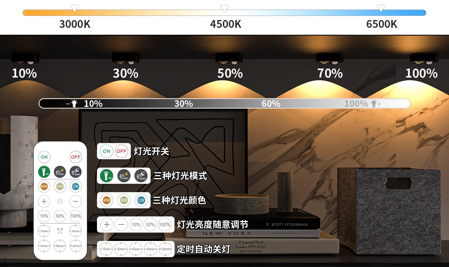 5. Temperatura da cor da luz: 6500K/luz branca 3000K/luz quente