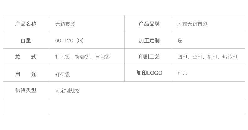 A Foshan Shengxin Nonwoven Products Co., Ltd. sempre prestou atenção à proteção ambiental verde por muitos anos e está comprometida em criar um ambiente de vida limpo e confortável. A Shengxin é uma fabricante profissional de sacolas não tecidas e uma fabricante profissional de serviços personalizados. A Shengxin tem muitos anos de experiência em produção. Ela pode atender às necessidades de produção em larga escala e de alta qualidade, equipamentos completos de processamento de pré-impressão e pós-impressão e fluxos de processo diversificados, e pode fornecer aos clientes uma variedade de opções de impressão de forma flexível. Os principais produtos são: sacolas não tecidas, sacolas ecológicas, sacolas não tecidas portáteis, sacolas não tecidas dobráveis, sacolas não tecidas perfuradas, sacolas não tecidas, sacolas de compras, sacolas para presentes, sacolas publicitárias, aventais publicitários, sacolas não tecidas tridimensionais, sacolas Oxford, sacolas de algodão e vários tipos de sacolas para embalagens de roupas e vinhos e outros produtos de embalagem ecologicamente corretos. O produto é feito de tecido não tecido spunbond de polipropileno, que é à prova de umidade, respirável, flexível, não combustível, fácil de decompor, etc. "Gerenciamento de integridade" é nossa base, e "serviço atencioso" é a base do nosso desenvolvimento. Damos as boas-vindas aos clientes para perguntar e patrocinar!