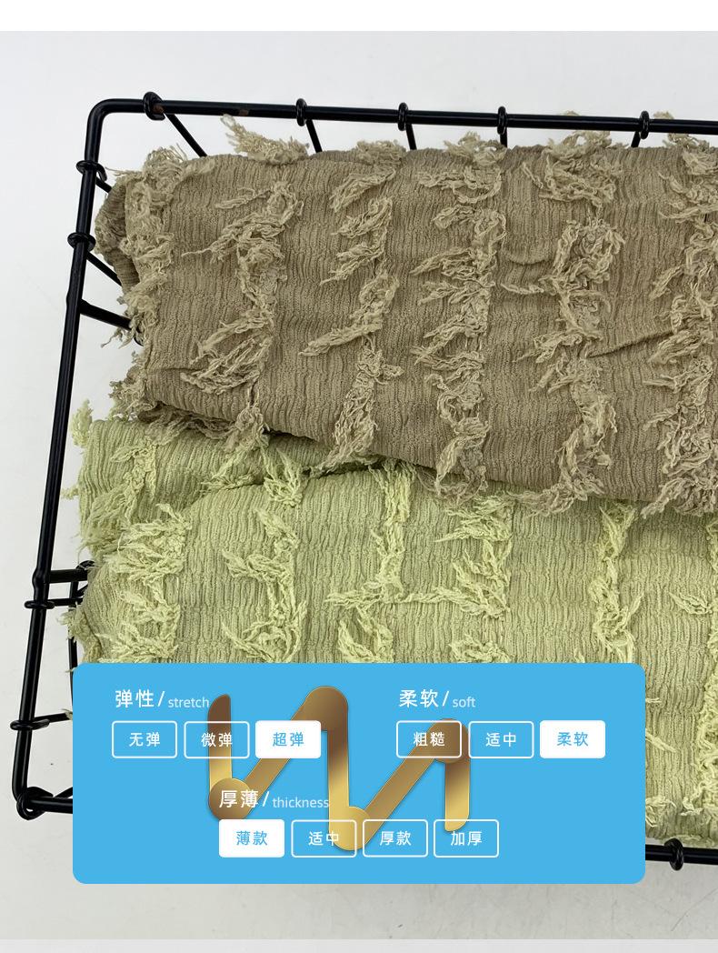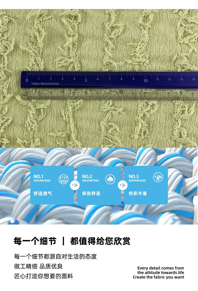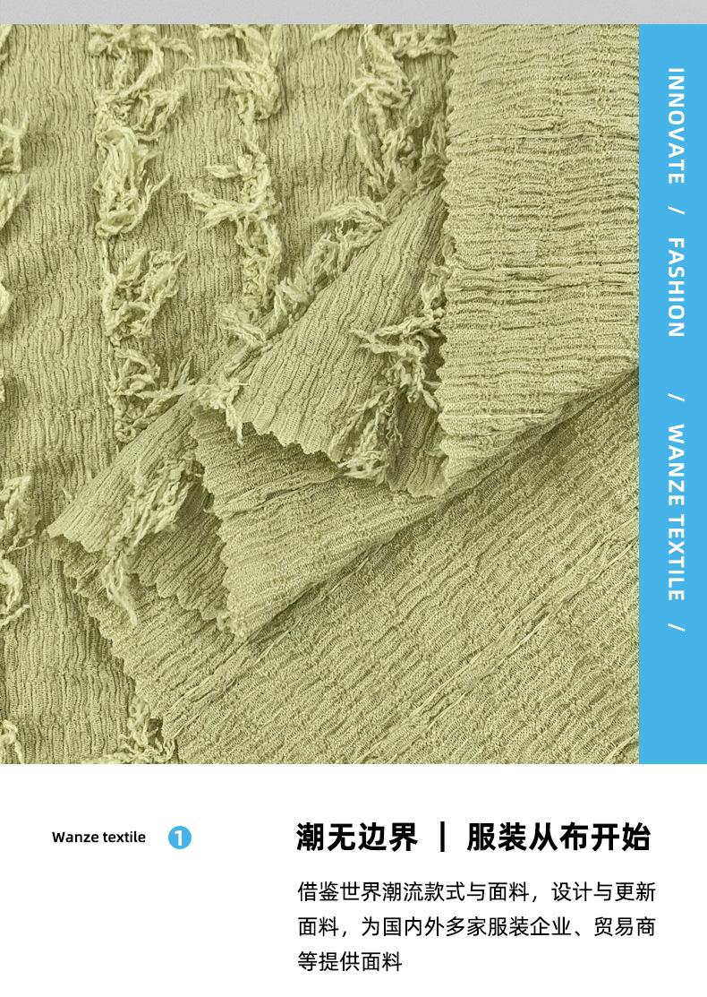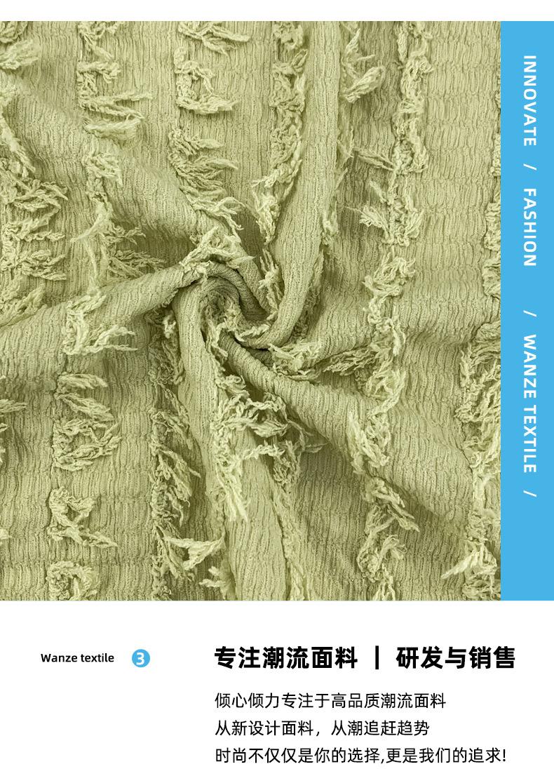 180g poliéster amônia lã tira bolha rugas primavera e verão fina moda borla jacquard t-shirt vestido de tecido de malha
