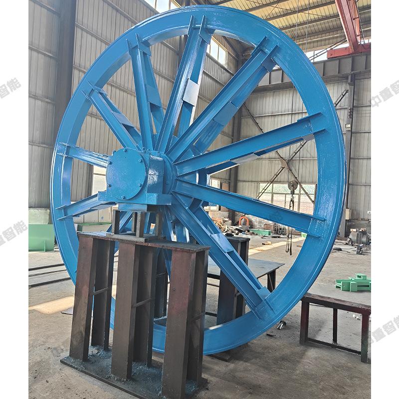 A roldana é instalada na torre como um suporte para apoiar o tambor da talha no contêiner da talha durante o içamento da mina e guiar o cabo de aço para girar. A ranhura do cabo é revestida com blocos de plástico ou borracha para aumentar a vida útil do cabo de aço.