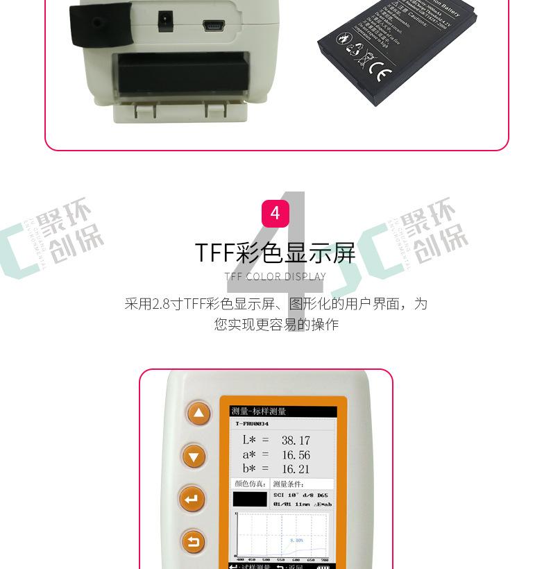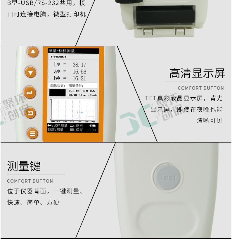 O instrumento possui seis fontes de luz A, C, D50, D65, F2 (CWF) e F12 (U30) e três parâmetros de renderização de cores (L*a*b*, L*C*h* e Yxy) para atender às necessidades dos usuários. As diferentes necessidades de medição de cores dos usuários.