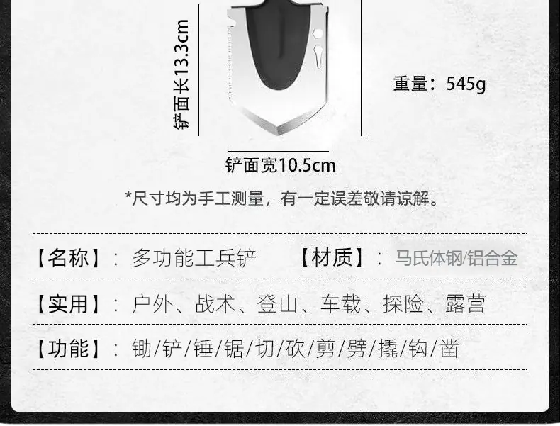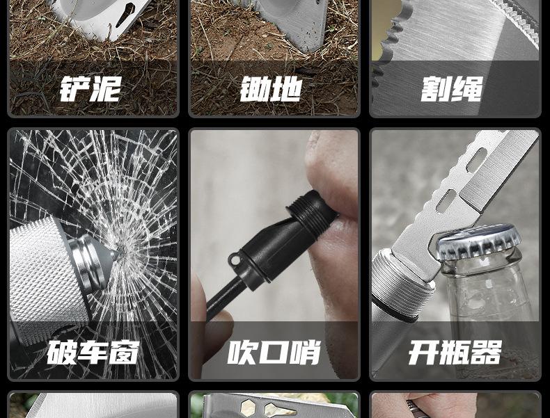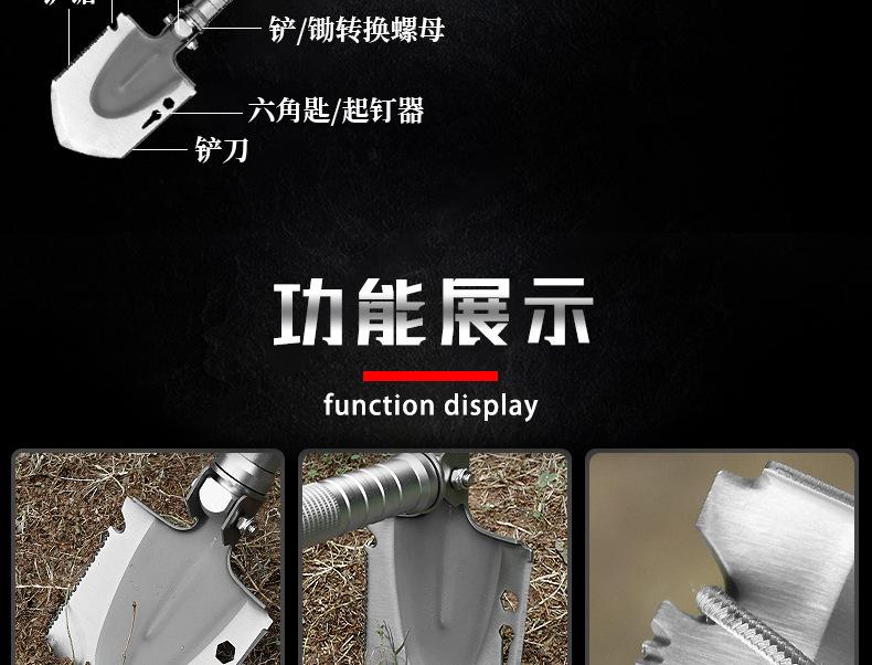 Lembrete especial: A pá de engenharia é uma ferramenta para uso externo, como camping, reposição de veículos, resgate e emergência, etc. As consequências causadas por isso nada têm a ver com a nossa loja. Obrigado pela sua cooperação.