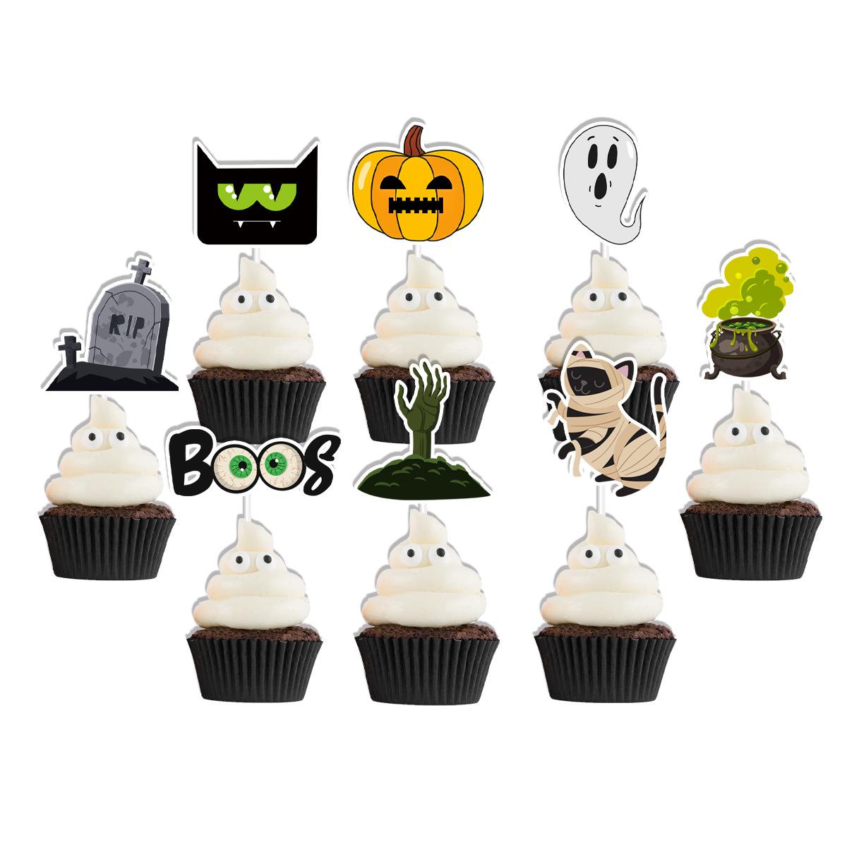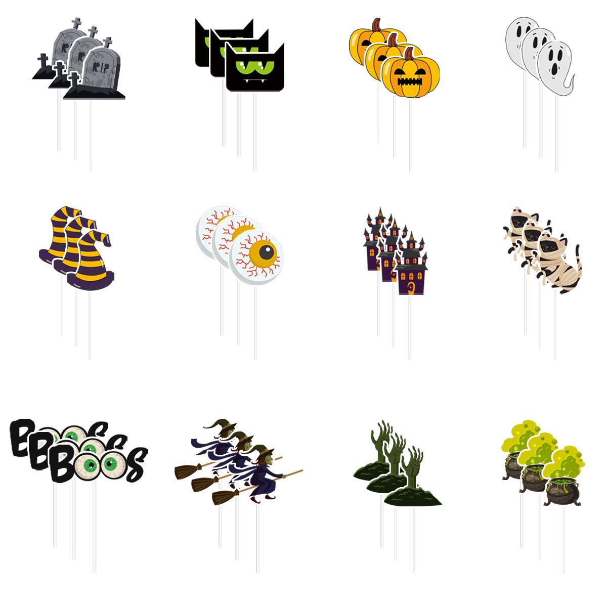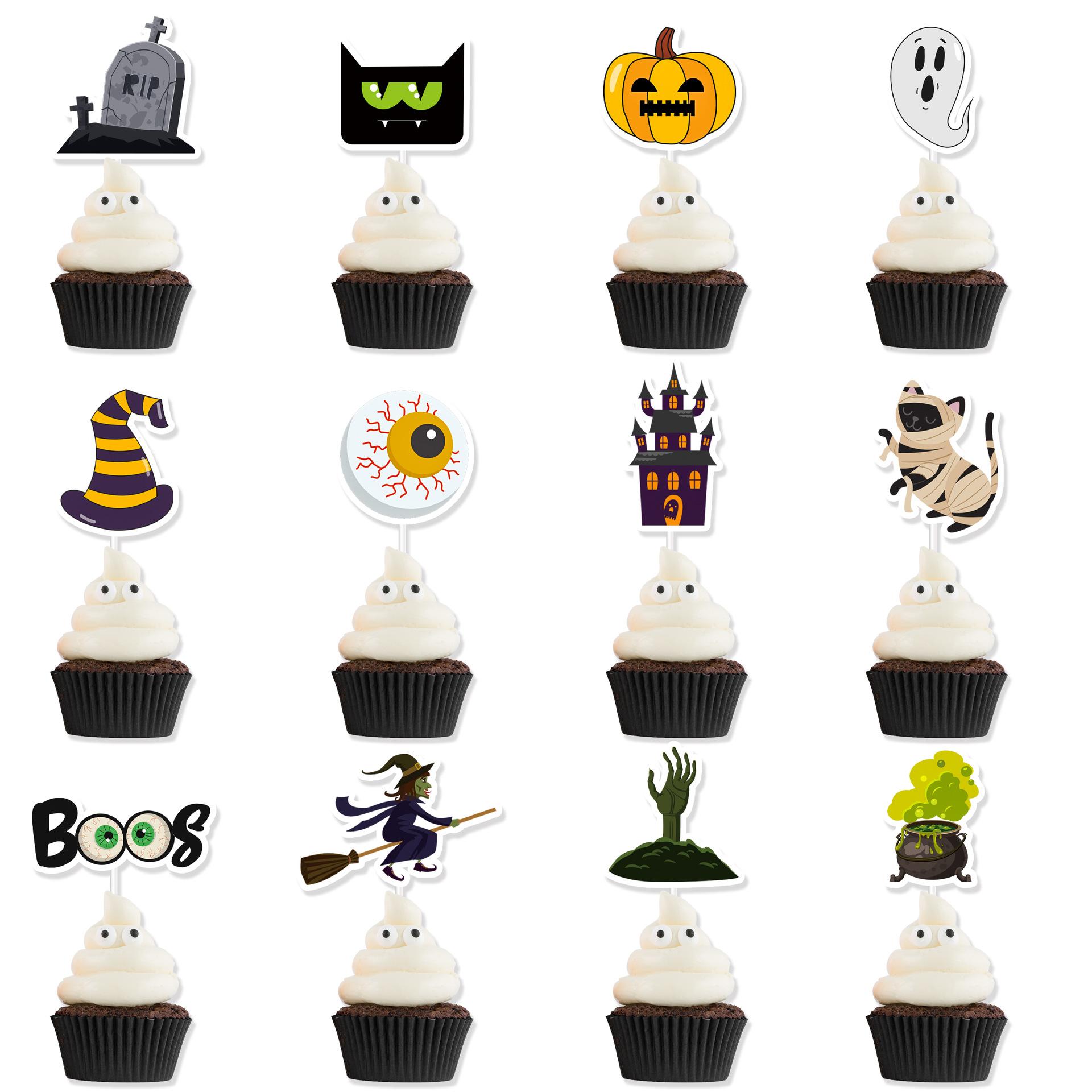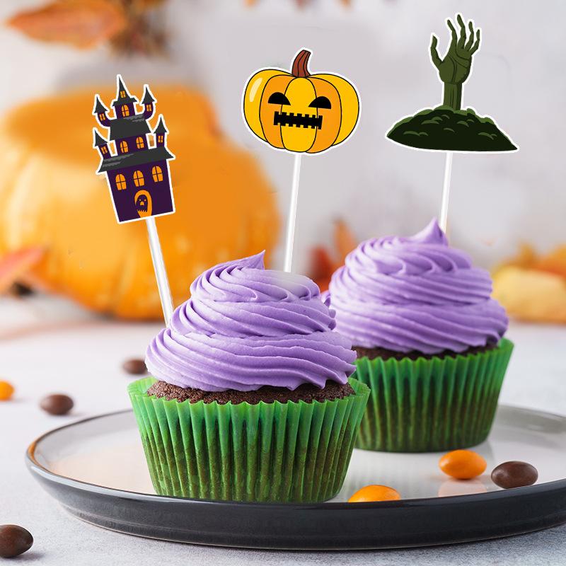 Bandeira de copo de papel de Halloween transfronteiriça abóbora aranha bruxa Amazon festa de Halloween bolo pequena bandeira