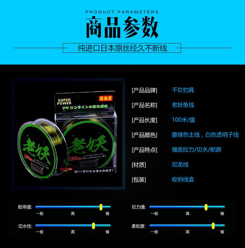 Linyi Lanshan District Qianjiu Outdoor Fishing Tackle Factory é uma linha de pesca de alta qualidade, linha de seda crua, linha de náilon, linha de carbono, linha composta de alta resistência, linha trançada de alta resistência
