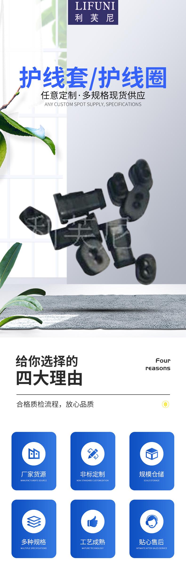 Manga de proteção de fios - o produto é usado principalmente na porta de saída do cabo de alimentação para fornecer proteção, antifricção, absorção de choque e outras funções.