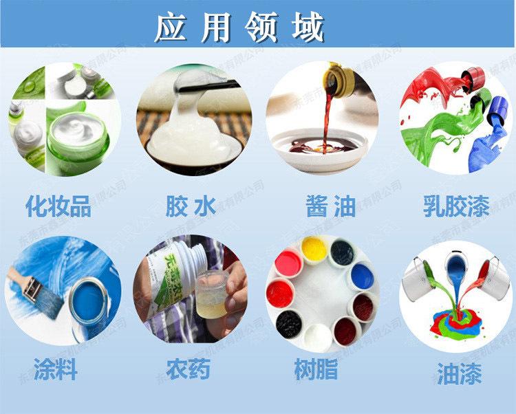 Adequado para revestimentos, corantes, pigmentos, tintas, fabricação de papel, adesivos e outras indústrias químicas para líquidos e líquidos--Os materiais da fase sólida são agitados, dissolvidos e dispersos.