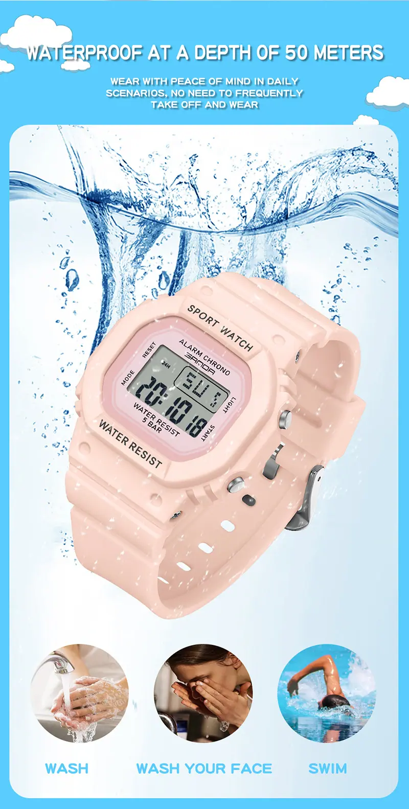 2. ¡Cada modelo es resistente al agua para nadar de 30 a 50 metros! ¡Pero no es apto para baños en agua caliente!