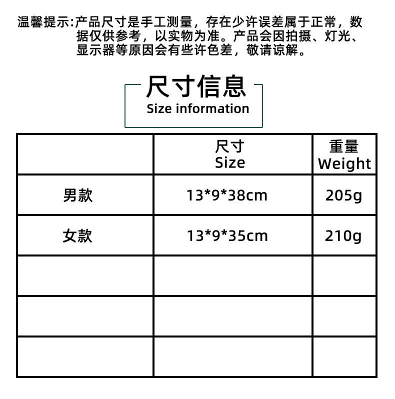 | problema de tamanho | O tamanho é medido manualmente. Devido a fatores como diferentes ferramentas e métodos de medição, haverá um erro de 2 mm. |