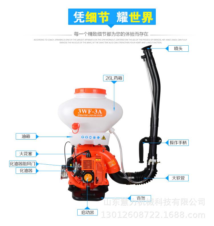 Pulverizador de fertilizante a gasolina de mochila Pulverizador de névoa de mochila de dois tempos Pulverizador de pó de pulverização de quatro tempos