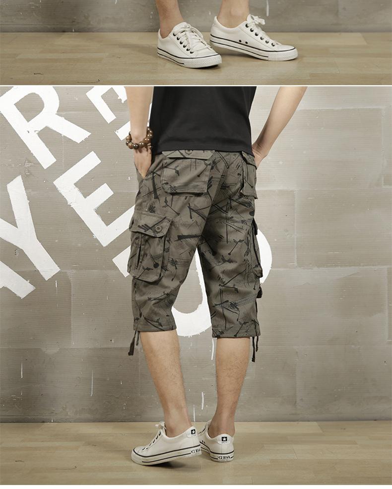 Macacão de verão fino solto shorts masculino multi-bolso calças de comprimento médio ao ar livre lazer esportes estilo calças cortadas