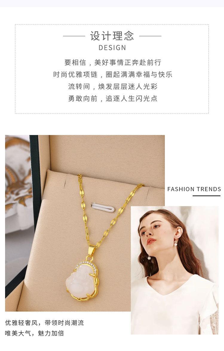 Compre Novo Colar de Buda Maitreya em Aço Titânio Joias Hip-Hop Design de Nicho Versátil Não Desbota Pingente de Calcedônia Corrente Clavicular no atacado no Joom.pro