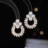 Brincos de leque de zircônia incrustada de luxo leve e alta qualidade, estilo longo europeu e americano atmosférico, pino de prata s925, brincos combinando para vestido de banquete