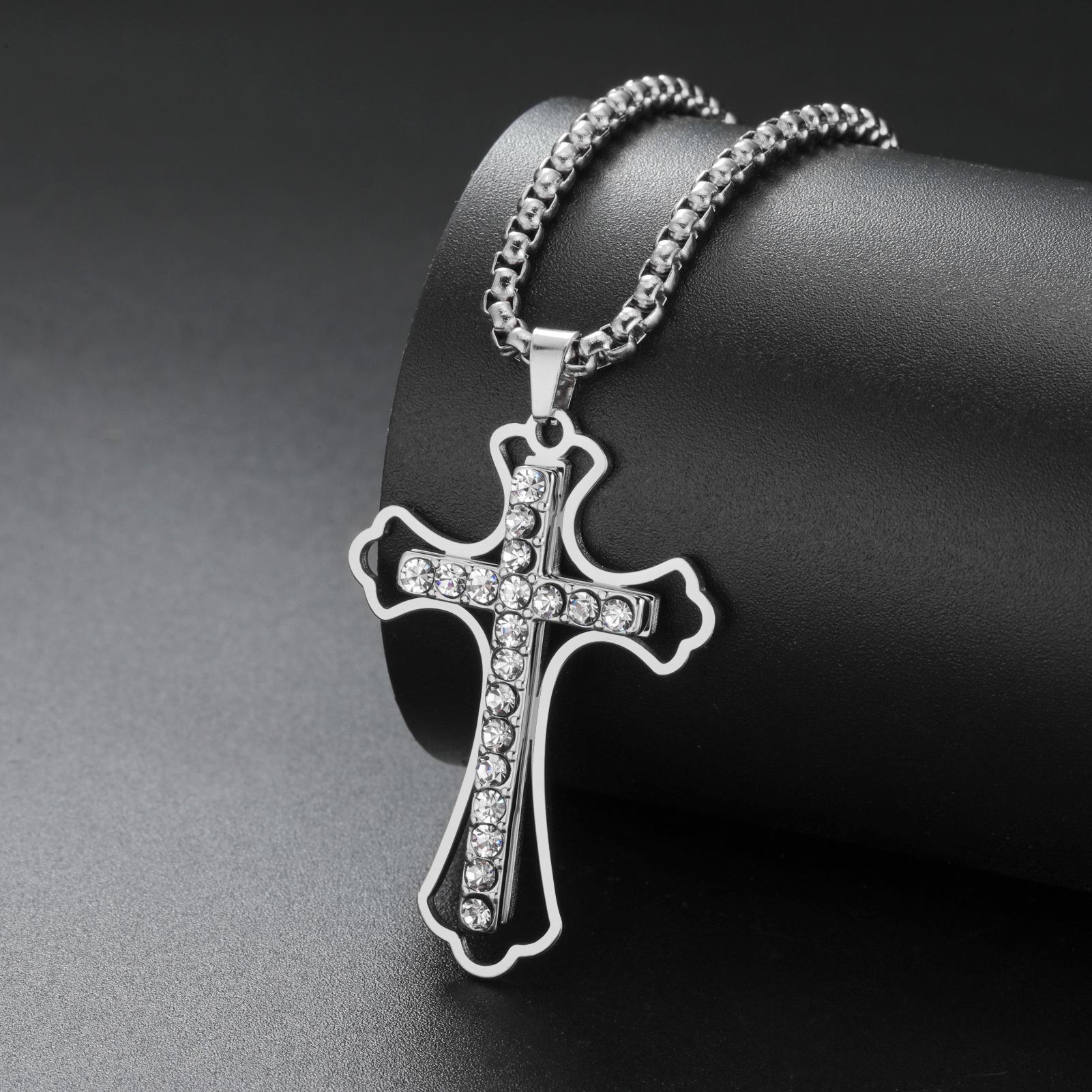 Comércio exterior AliExpress hot men's cruz aço inoxidável pingente de diamante hip hop titânio aço pingente diamante maré jóias