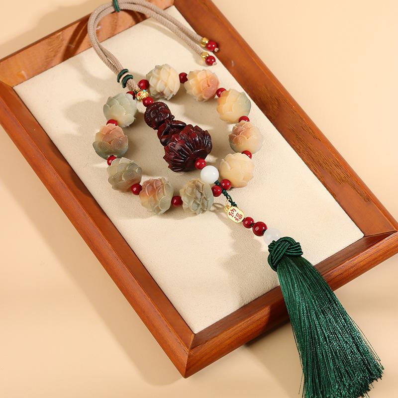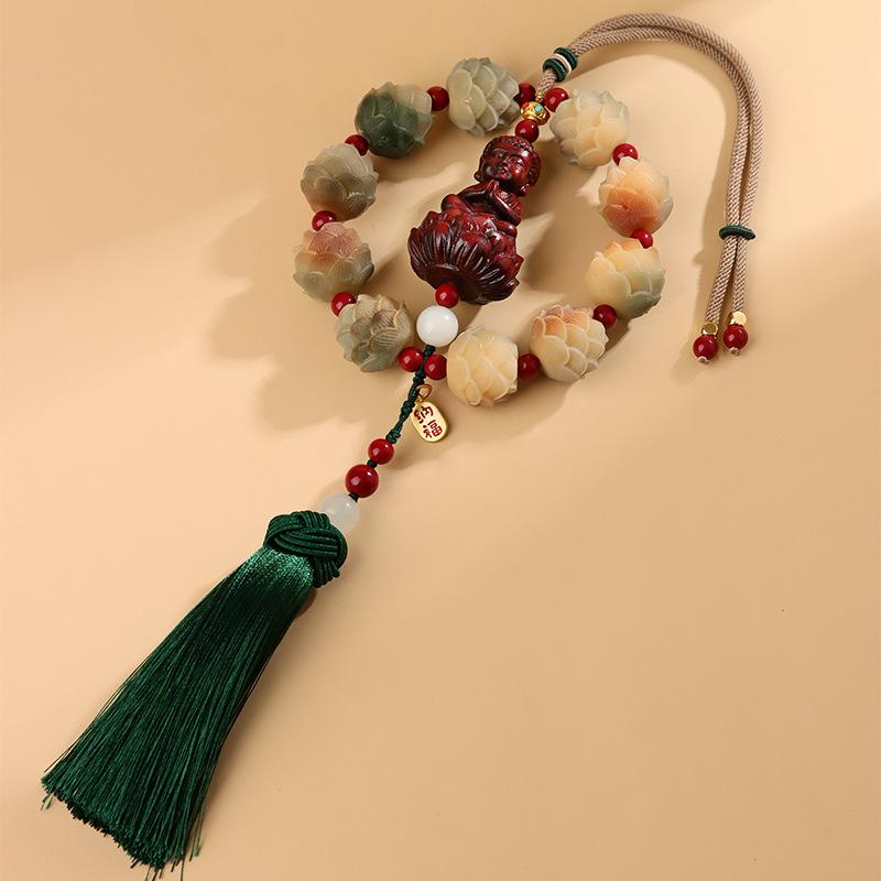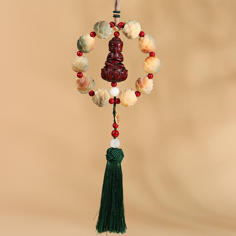[Nome do produto]: Bodhi Lotus Red Sandalwood Pequeno Buda Pendurado no Carro