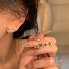 | |  | Três pares de brincos de zircônia estrela e lua para mulheres, pequenos e requintados, versáteis, brincos de piercing de orelha, brincos de alta qualidade e elegantes | | |