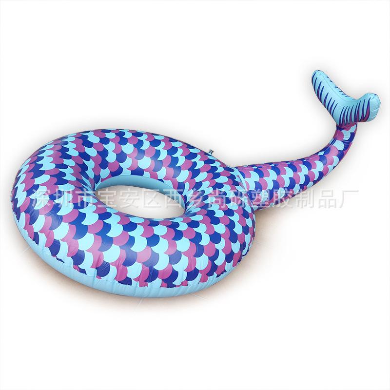 | nombre del producto | Flotador de natación de cola de pez de PVC | Materiales y | 0,25 mm de PVC |