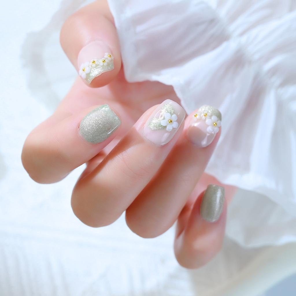 Unhas usadas à mão curtas primavera e verão pequenas unhas frescas de cinco pétalas remendo de unhas de flores unhas postiças reutilizáveis