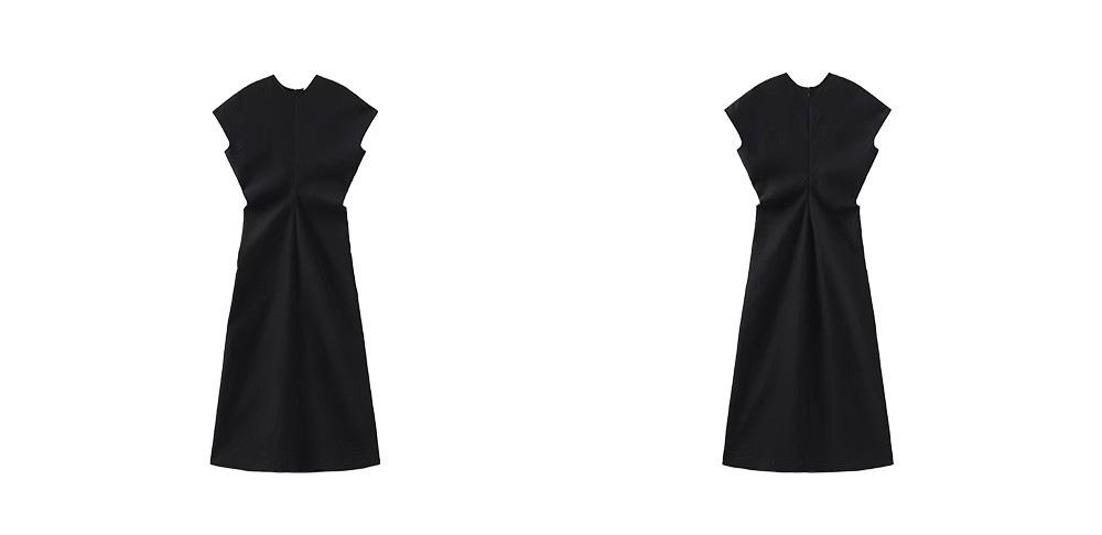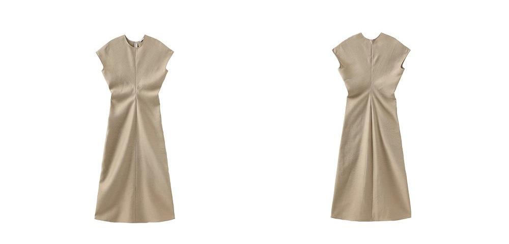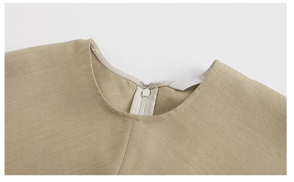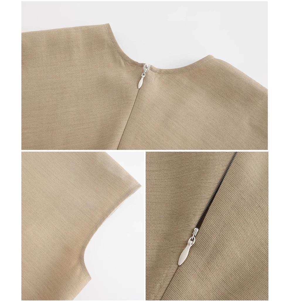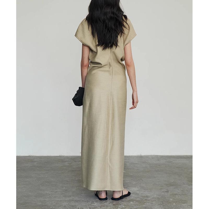 Vestido de cor sólida novo estilo vestido feminino de manga curta temperamento fino saia longa alto sentido