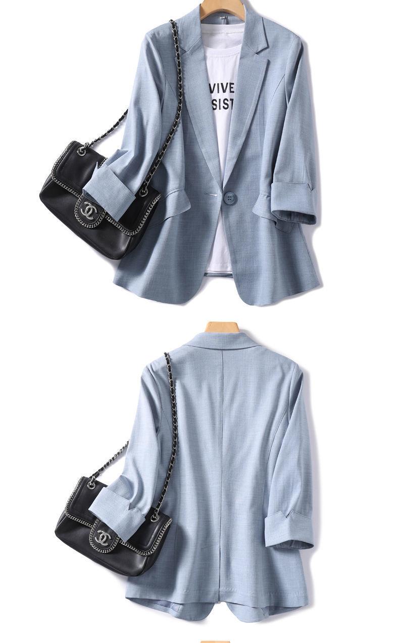 Compre Casaco Blazer Fino Pequeno para Mulheres 2025 Novo Verão Manga Três Quartos Verão Novo Elegante Slim Top de Blazer para Mulheres no atacado no Joom.pro