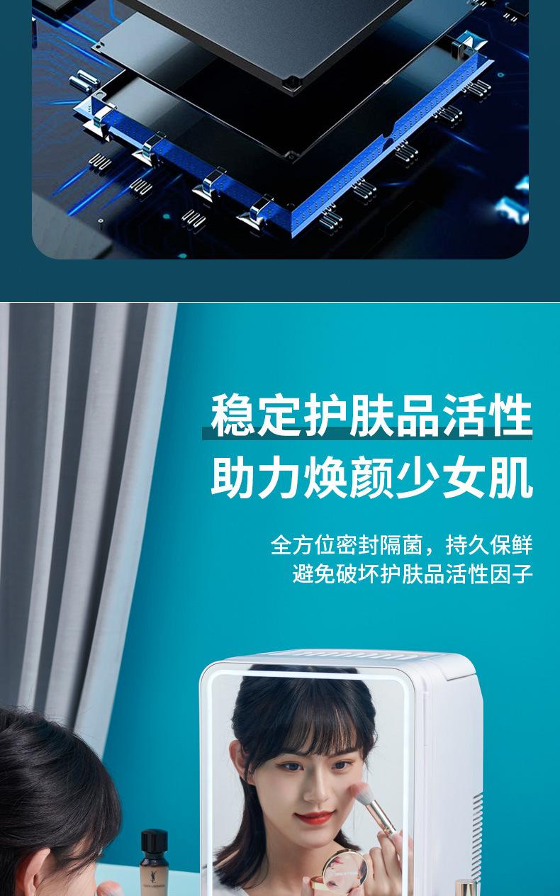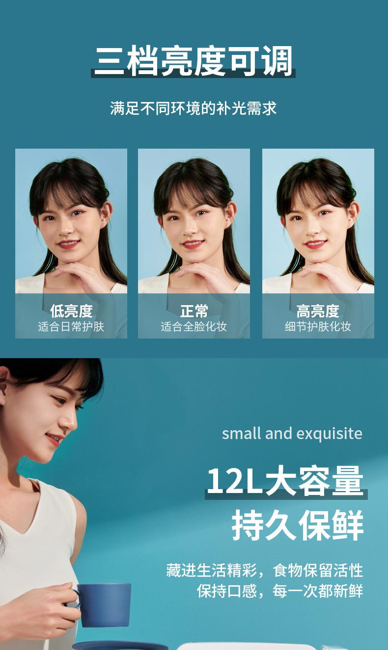 1, geladeira de maquiagem nova com luz de 12 litros, superfície de espelho temperado, todo o painel frontal da unidade é feito de material de vidro espelhado, com iluminação LED, a iluminação branca quente proporciona visibilidade clara, uso limpo, resistente a arranhões e sujeira, a luz é uma iluminação branca quente, com três níveis, atendendo às necessidades de suplementação de luz de diferentes ambientes, o brilho baixo é adequado para cuidados diários com a pele, o brilho normal é adequado para maquiagem de rosto inteiro, o brilho alto é adequado para cuidados detalhados com a pele e maquiagem