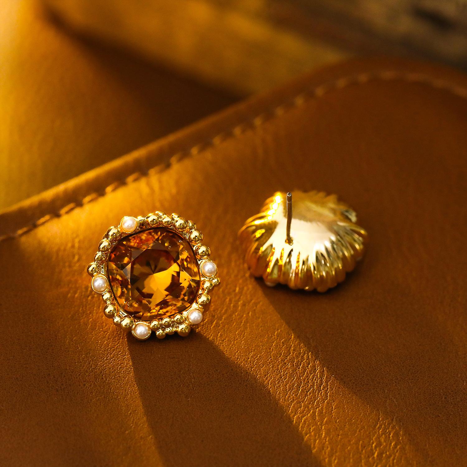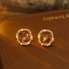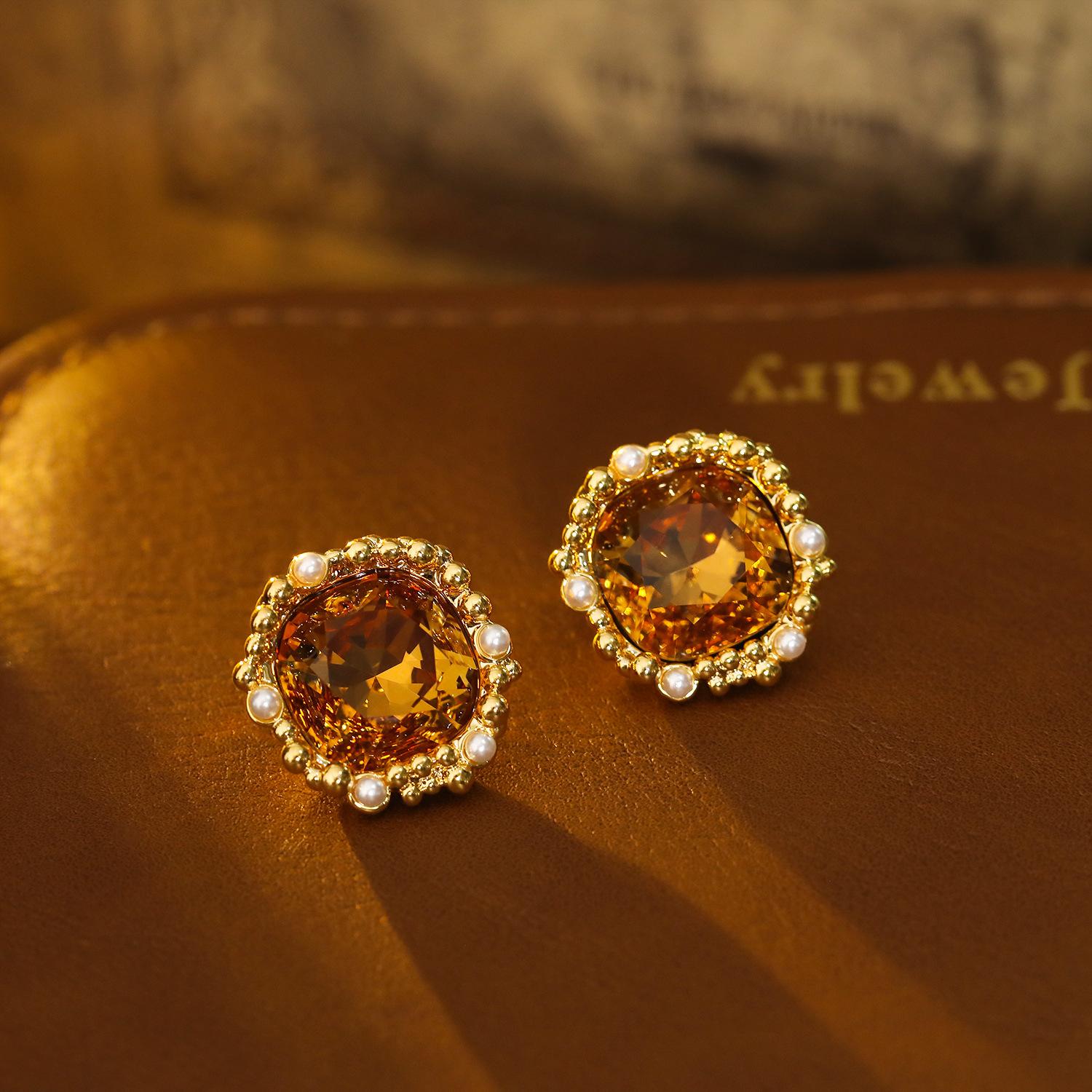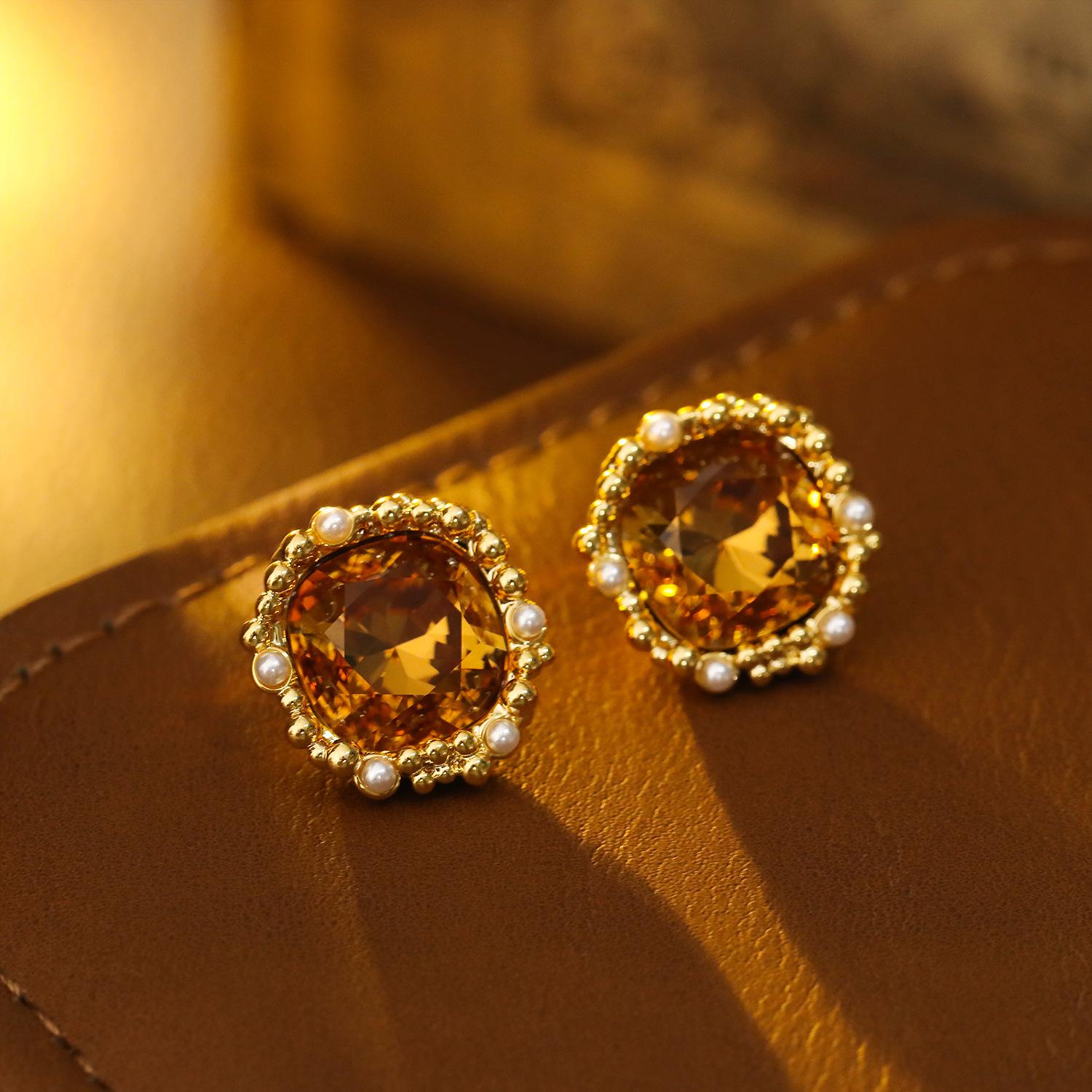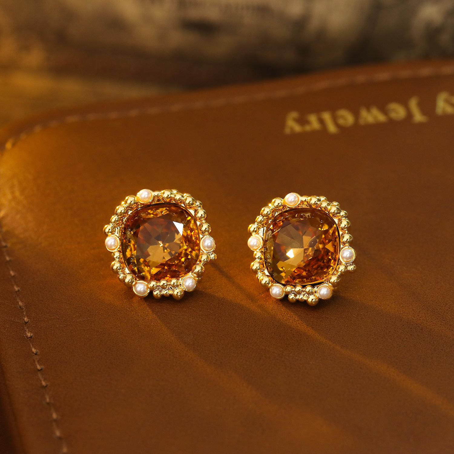 Nome do Produto: Brincos Vintage Maillard Marrom Escuro Diamante