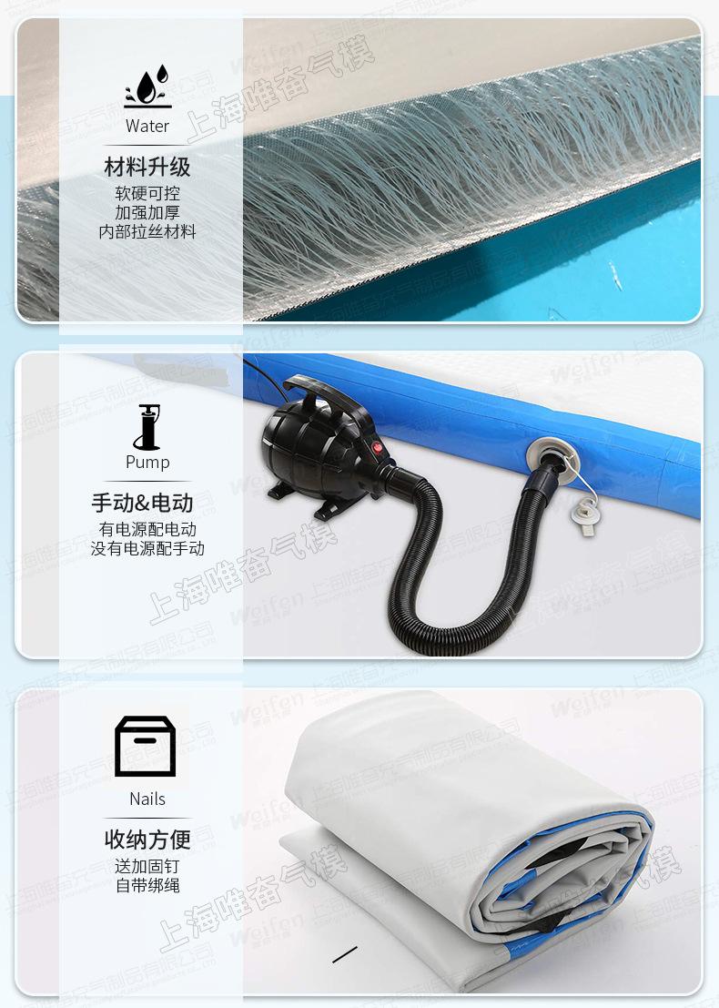 2. Ao usar produtos infláveis, certifique-se de que o chão esteja plano e livre de objetos afiados, duros ou salientes. Uma camada protetora deve ser colocada no chão, e o pano listrado colorido vendido no mercado pode ser usado. Durante o uso do produto, pode haver manchas no produto, que podem ser limpas com gel de banho. Use uma toalha macia ao limpar e não use uma escova dura.