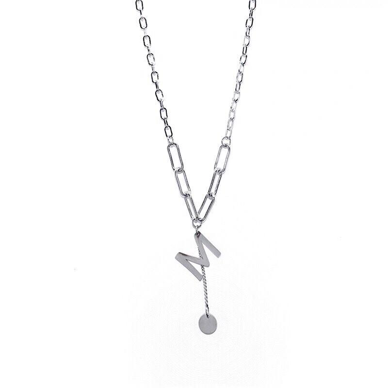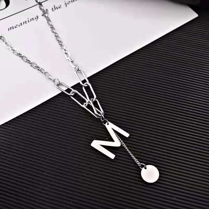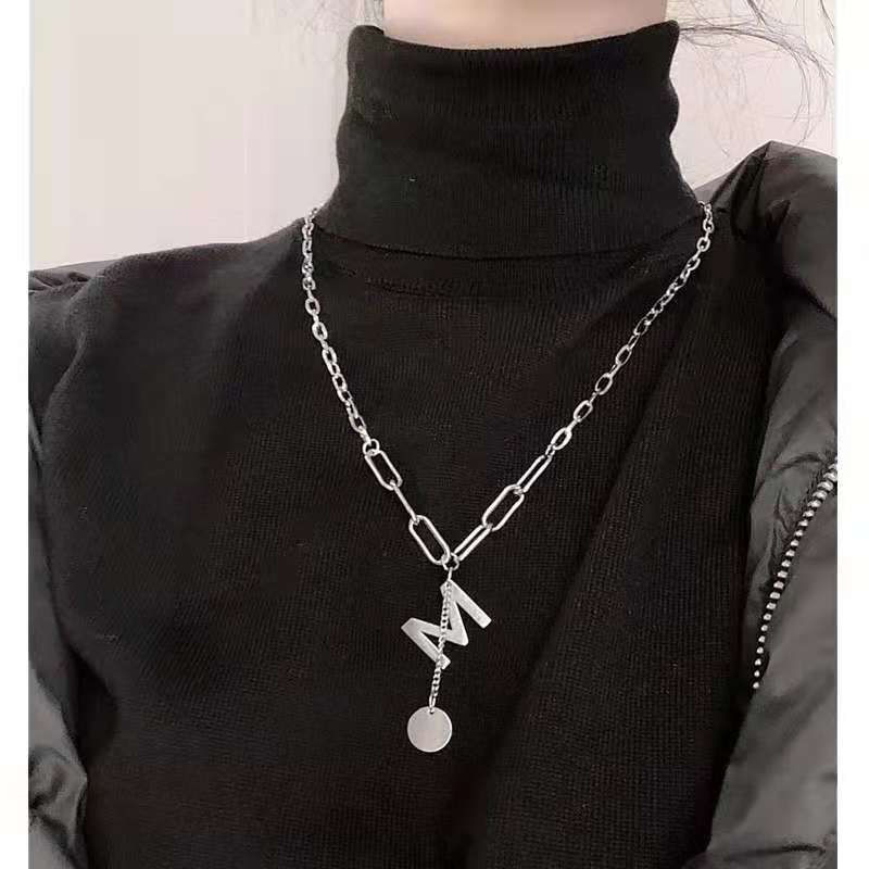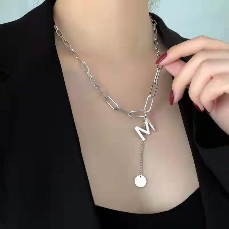 Novo pingente de letra M de aço titânio colar redondo feminino coreano celebridade da internet joias ins hip-hop personalidade clavícula corrente