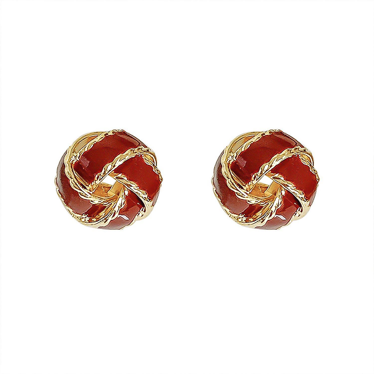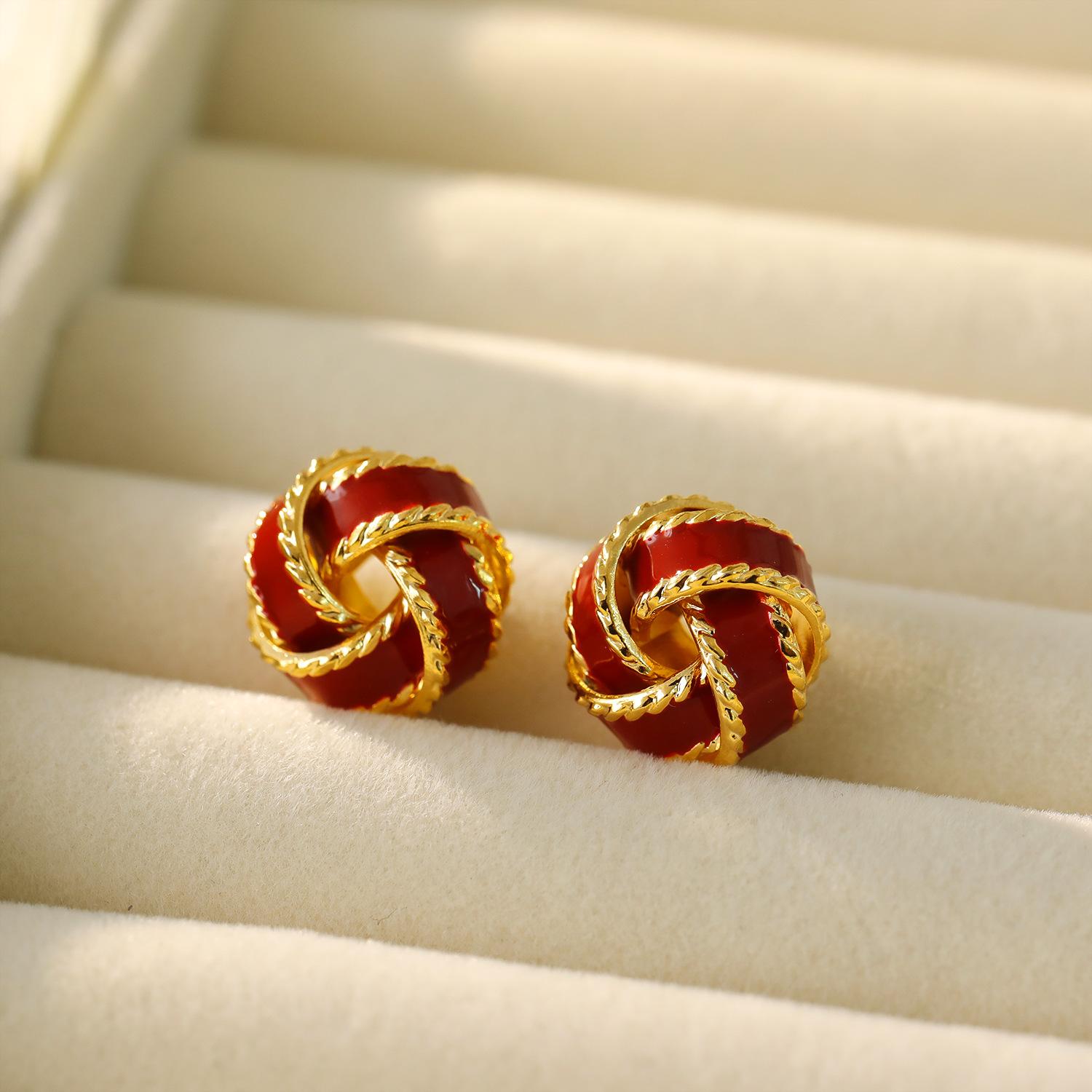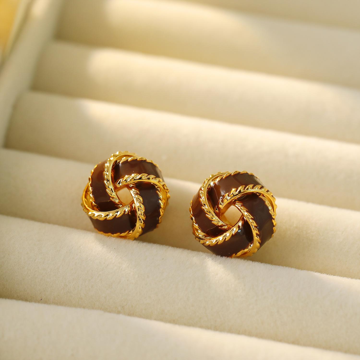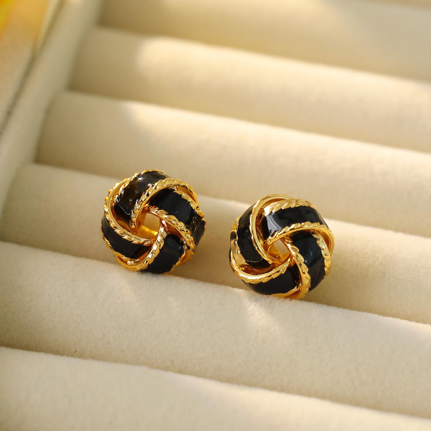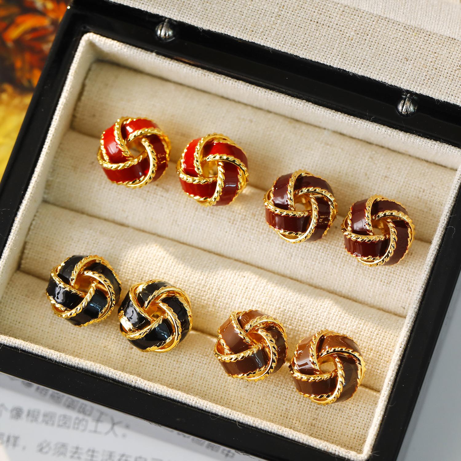 Nome do Produto: Brincos de círculo com nó em esmalte gotejamento vintage
