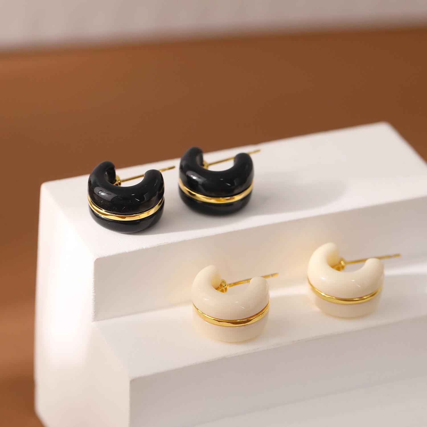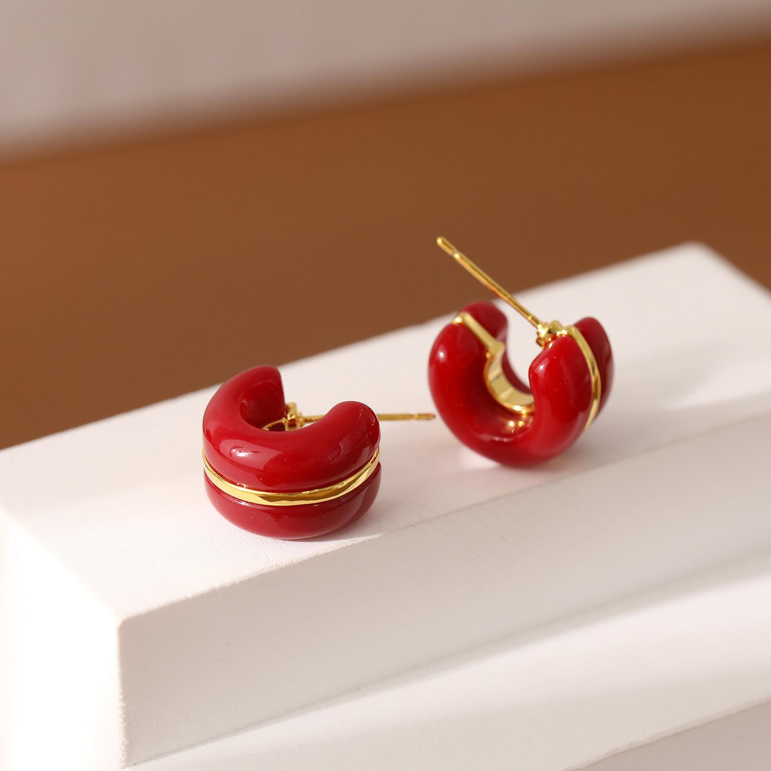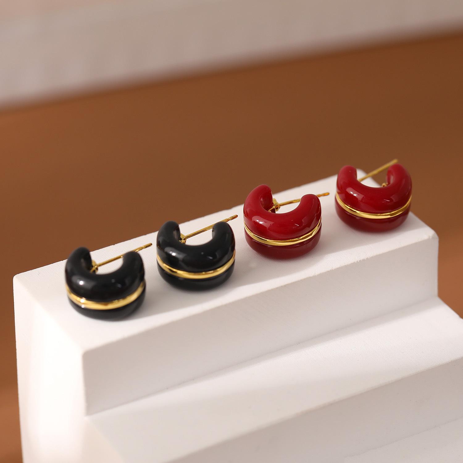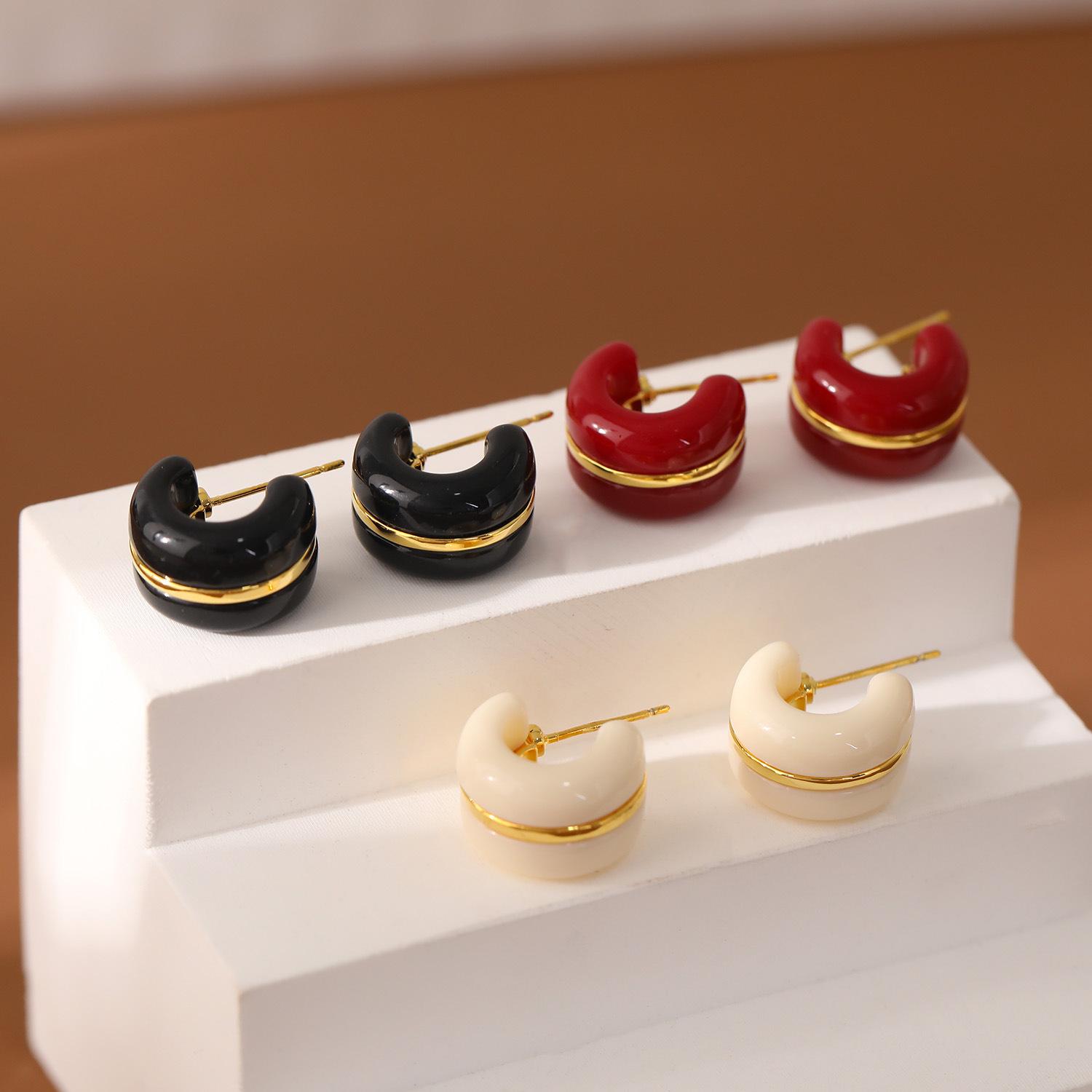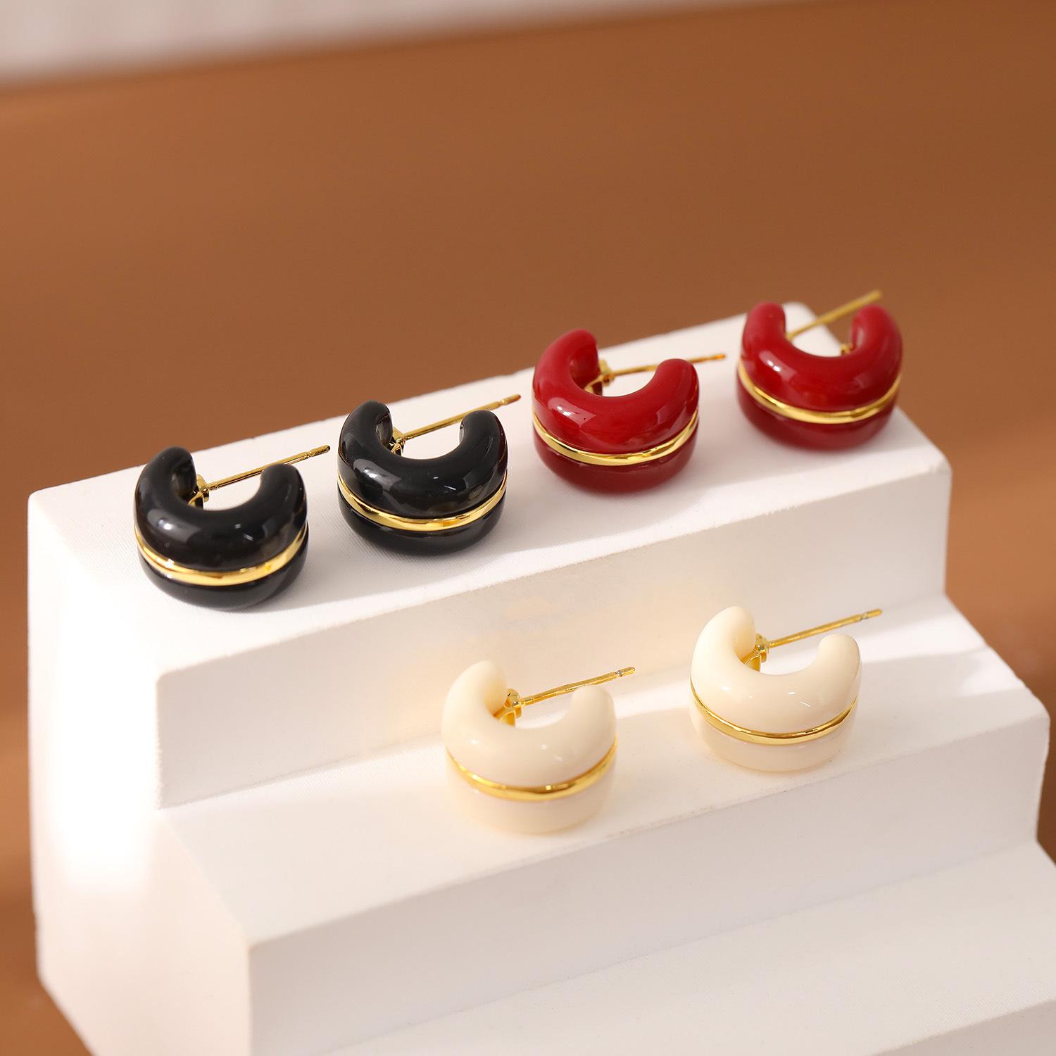 Nome do Produto: Brincos Populares Retrô em C com Gotejamento de Óleo