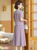 Vestido de verão para mães de meia-idade e idosas, saia jacquard brilhante, gola redonda, manga curta, fivela borboleta, cintura justa, vestido estilo nacional emagrecedor